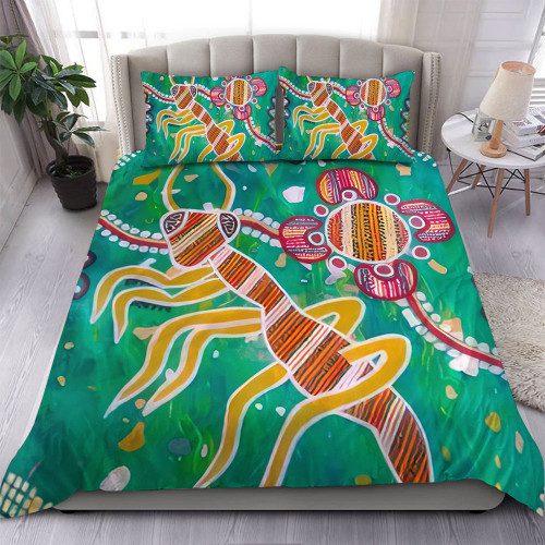 (Custom) Australia Bedding Set Green Aboriginal Art Painting