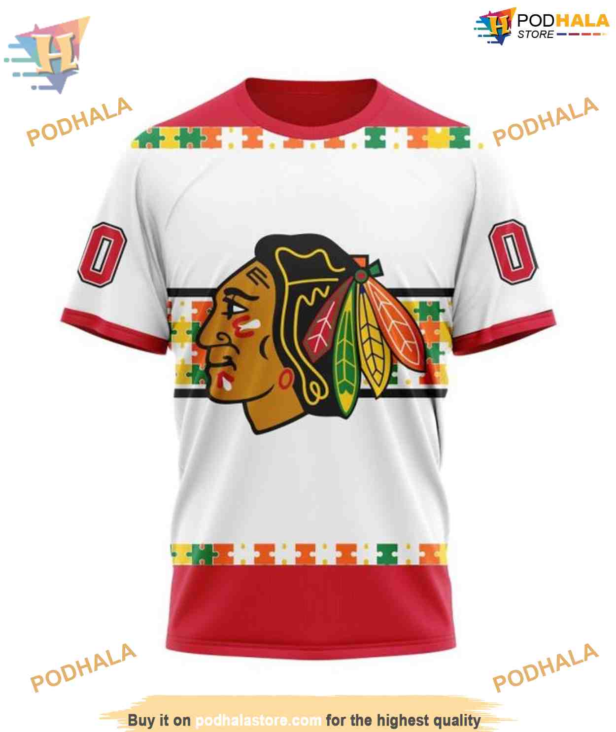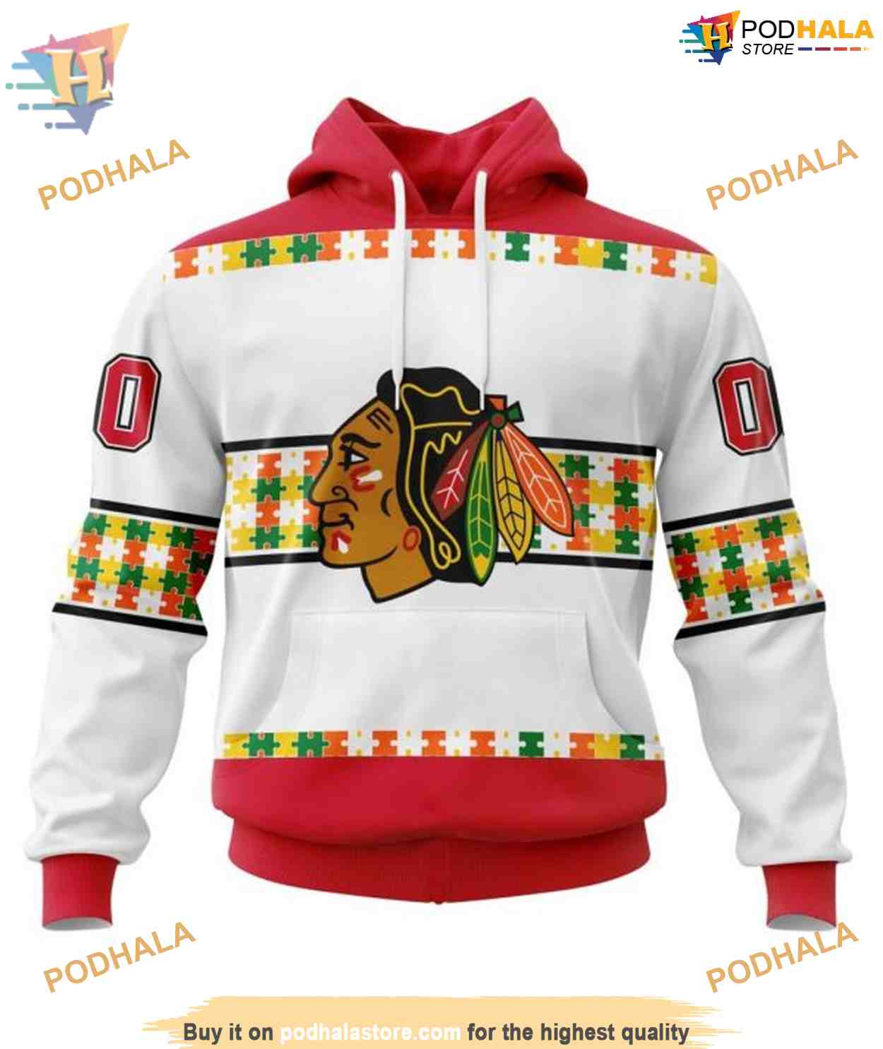 Custom Autism Awareness Custom Name And Number NHL Chicago Blackhawks Hoodie 3D