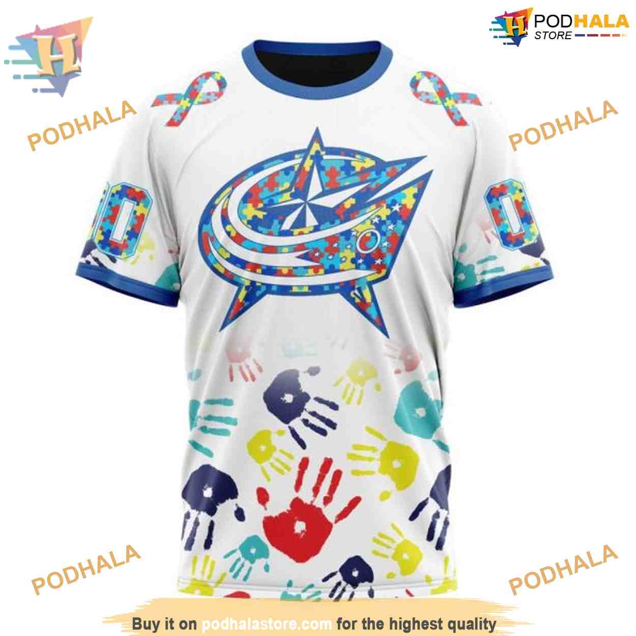 Custom Autism Awareness Design NHL Columbus Blue Jackets Hoodie 3D
