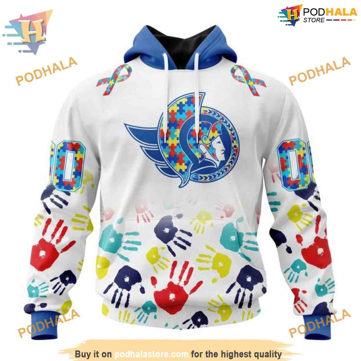 Custom Autism Awareness Design NHL Ottawa Senators Hoodie 3D