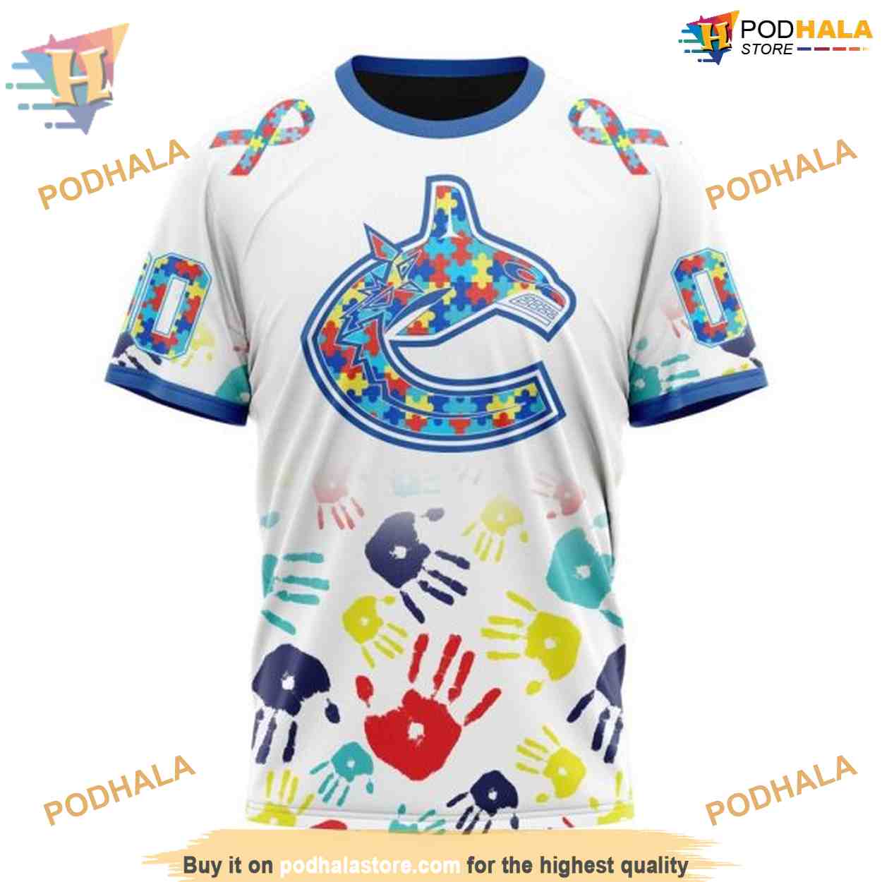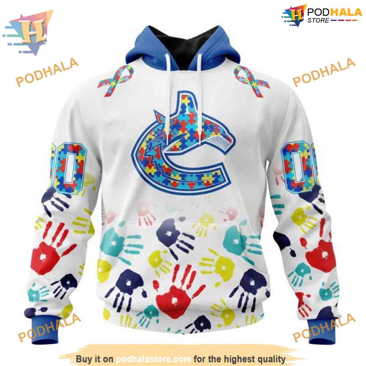 Custom Autism Awareness Design NHL Vancouver Canucks Hoodie 3D