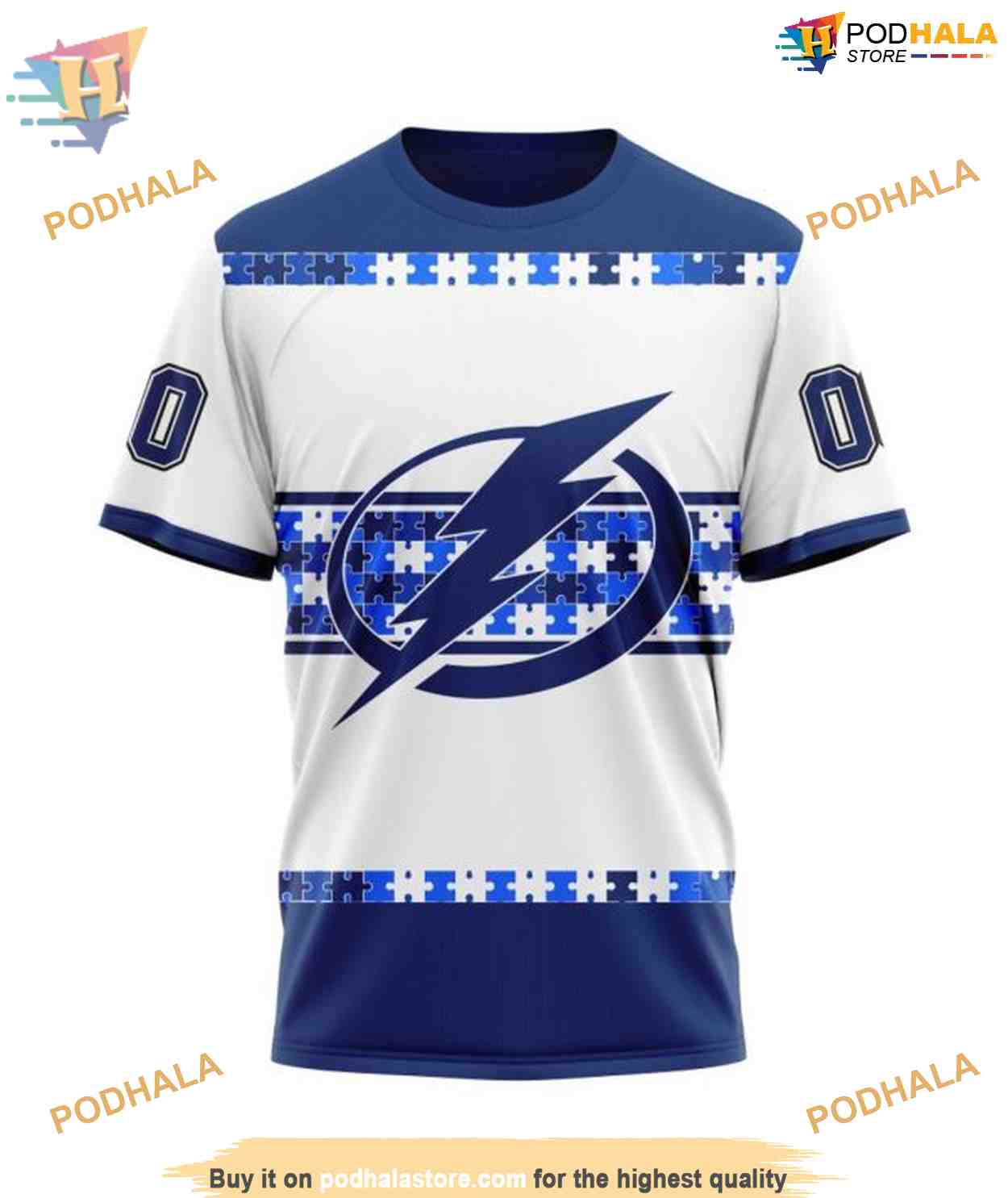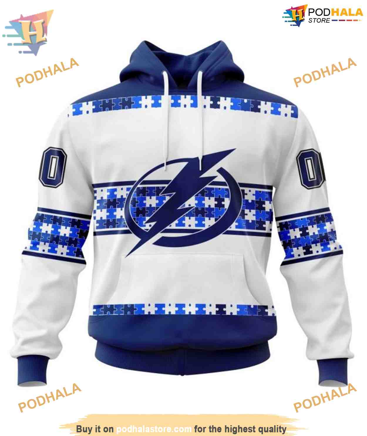 Custom Autism Awareness Name And Number NHL Tampa Bay Lightning Hoodie 3D