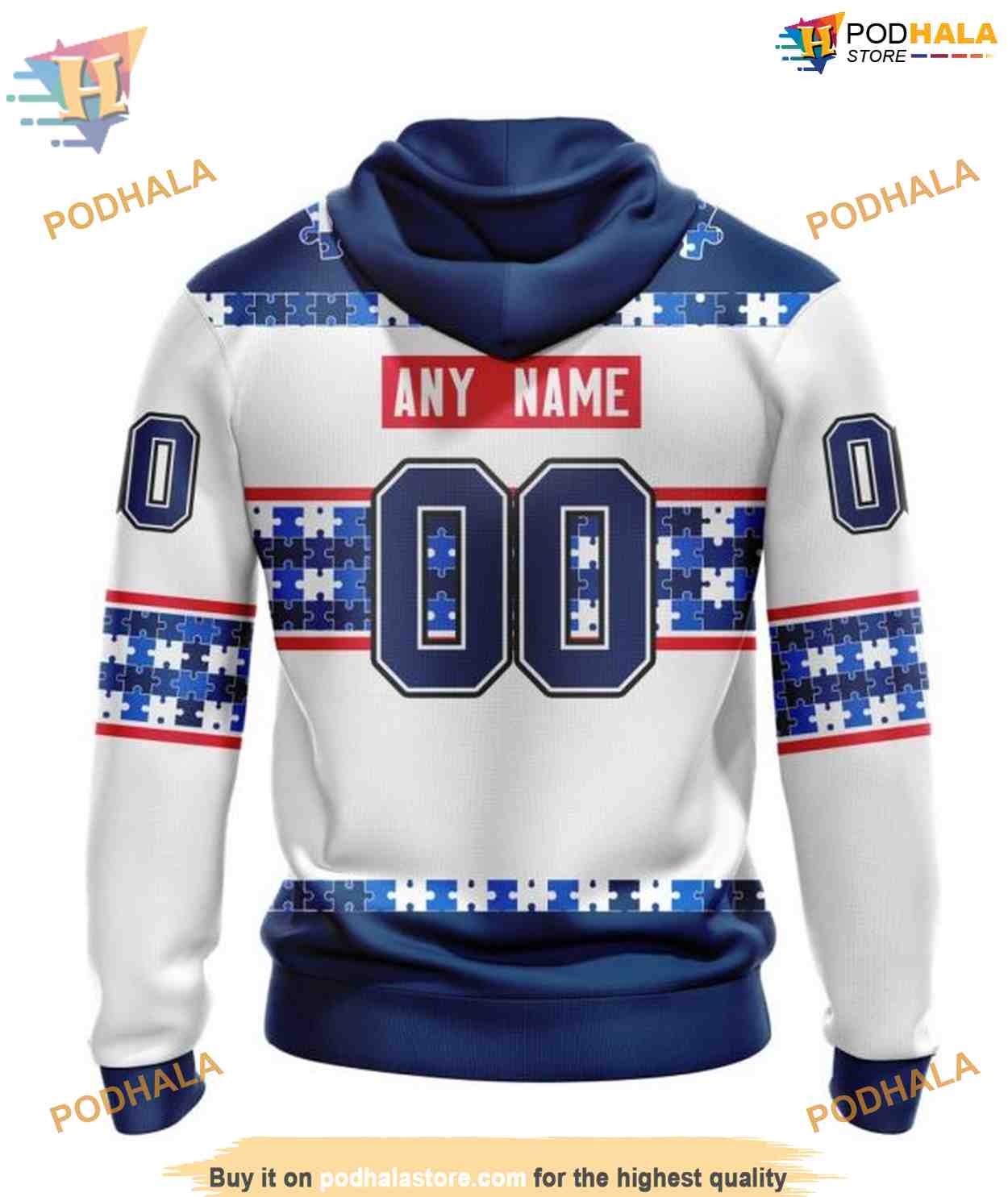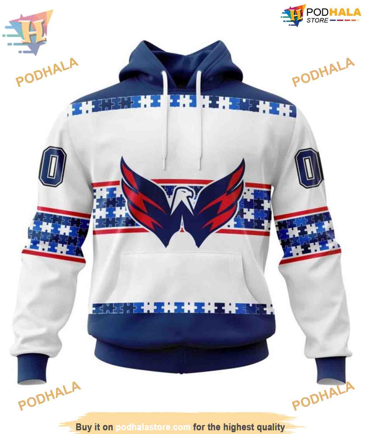 Custom Autism Awareness Name And Number NHL Washington Capitals Hoodie 3D