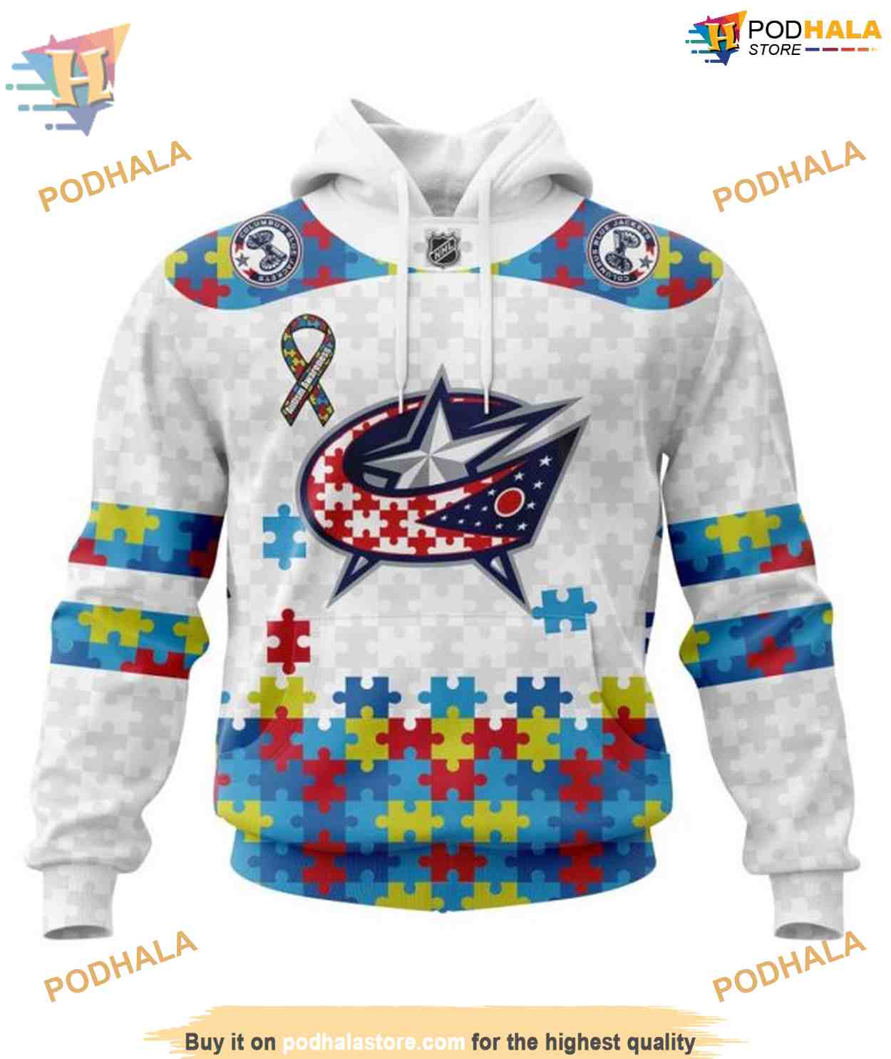 Custom Autism Awareness NHL Columbus Blue Jackets Hoodie 3D