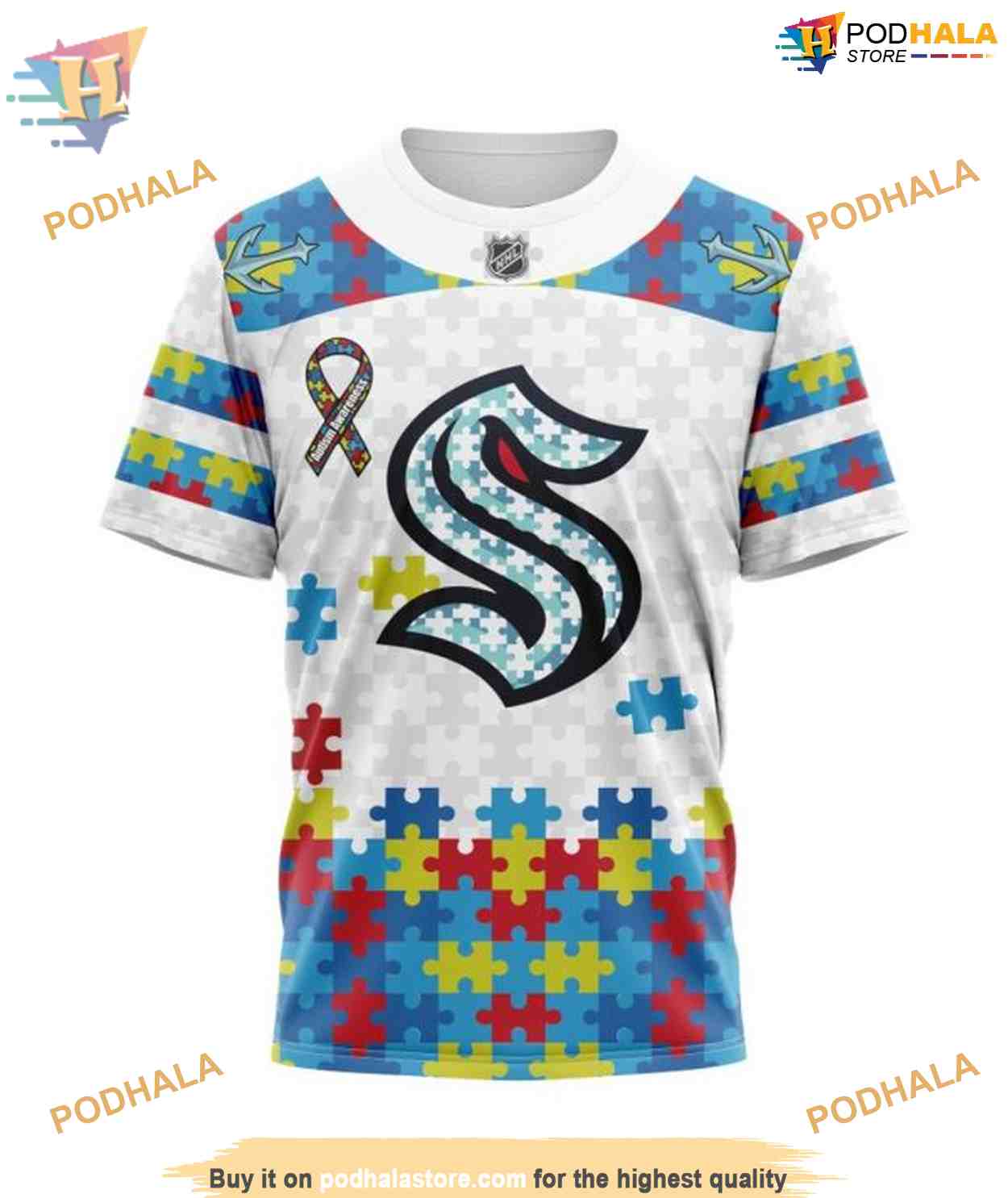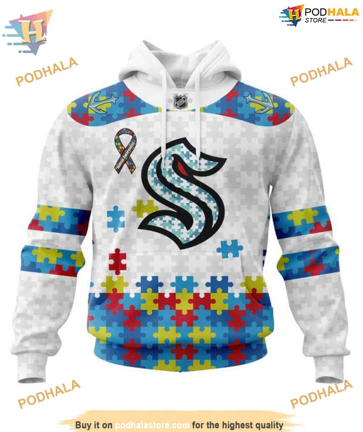 Custom Autism Awareness NHL Seattle Kraken Hoodie 3D