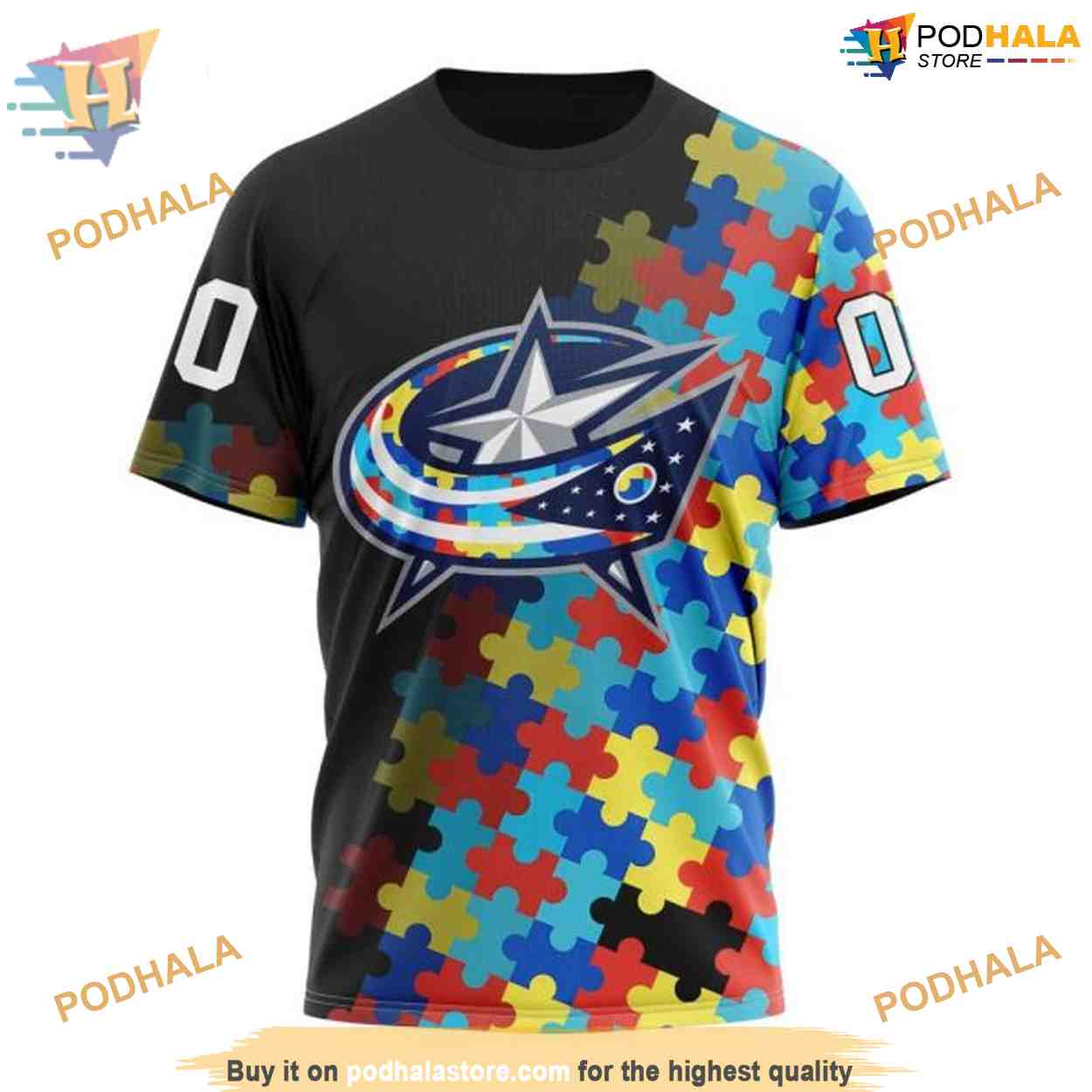 Custom Black Autism Awareness Design NHL Columbus Blue Jackets Hoodie 3D