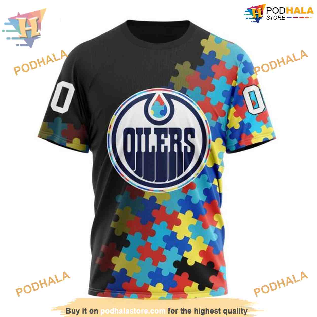 Custom Black Autism Awareness Design NHL Edmonton Oilers Hoodie 3D