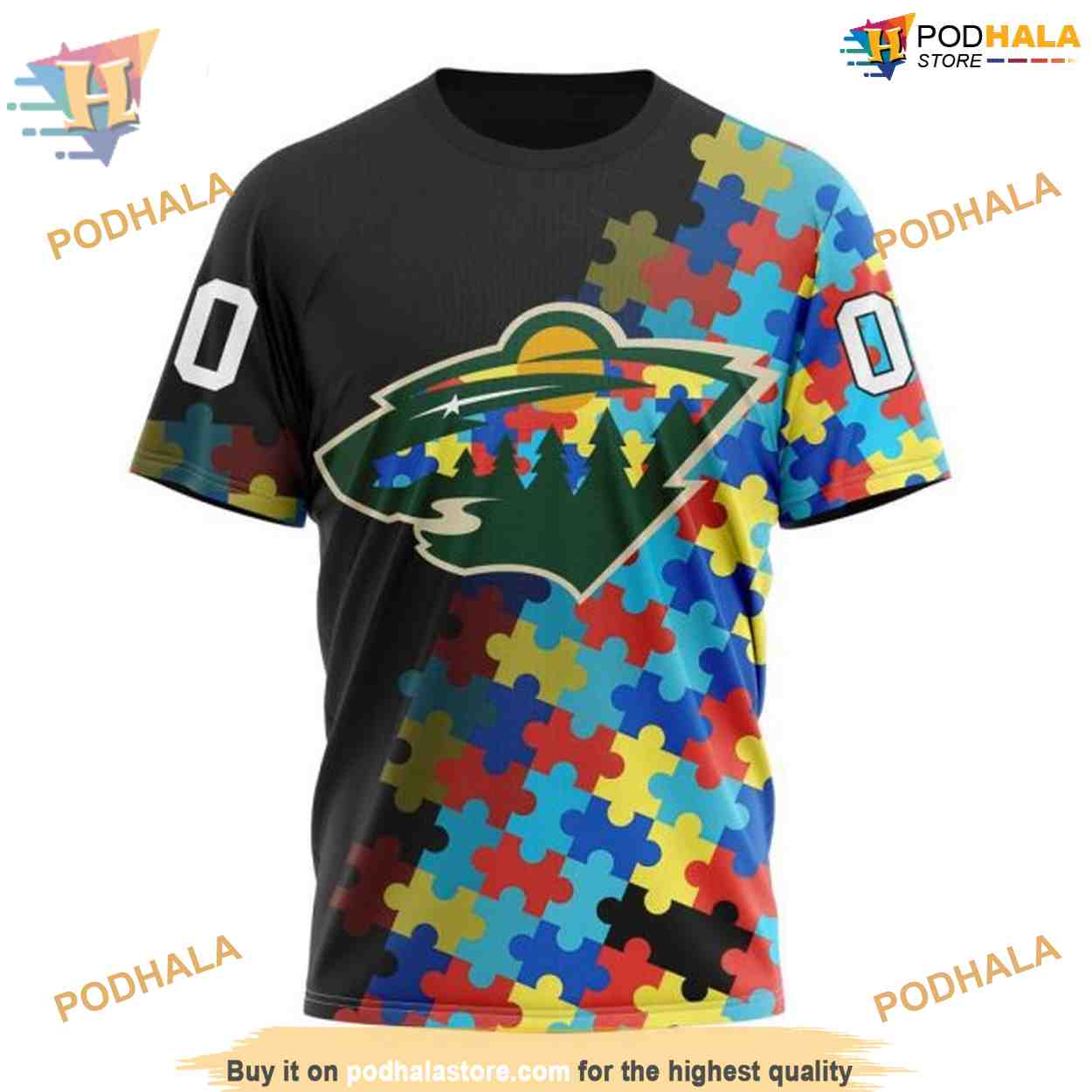 Custom Black Autism Awareness Design NHL Minnesota Wild Hoodie 3D