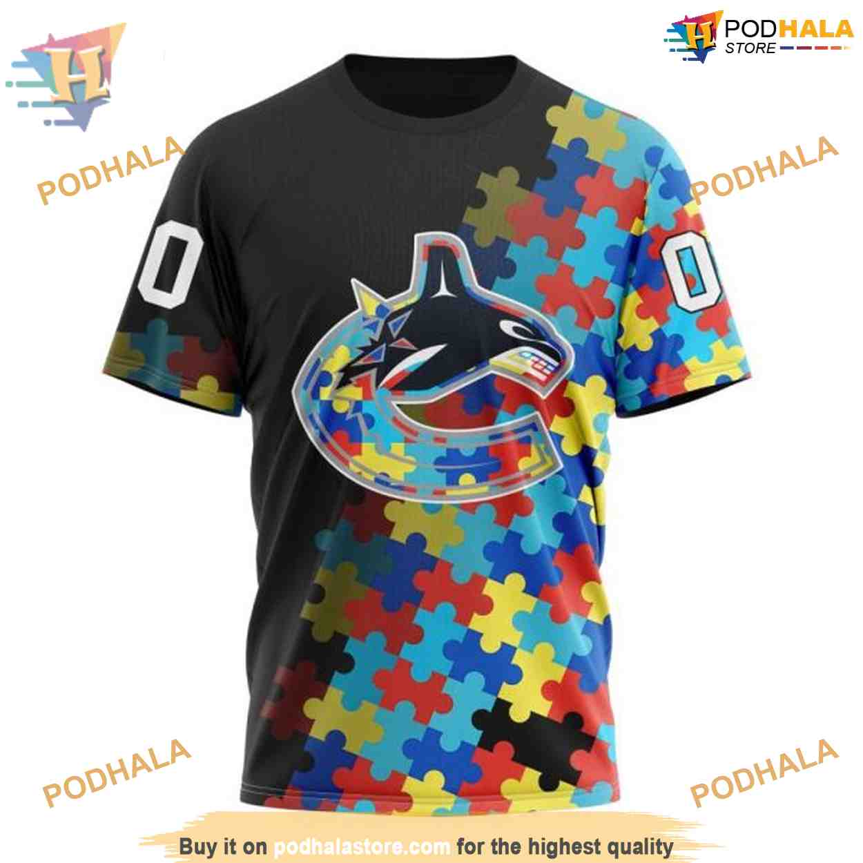 Custom Black Autism Awareness Design NHL Vancouver Canucks Hoodie 3D