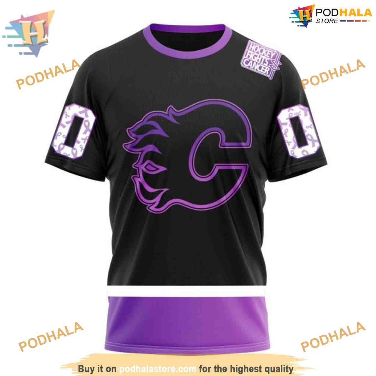 Custom Black Hockey Fights Cancer Kits NHL Calgary Flames Hoodie 3D Sweatshirt