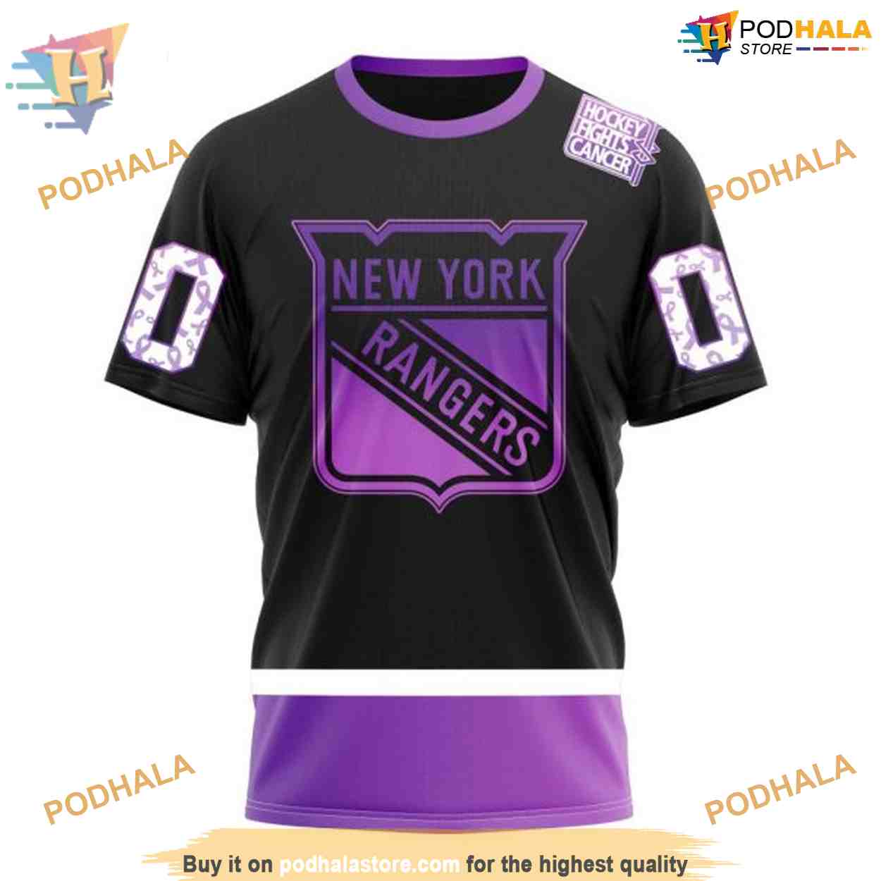 Custom Black Hockey Fights Cancer Kits NHL New York Rangers Hoodie 3D