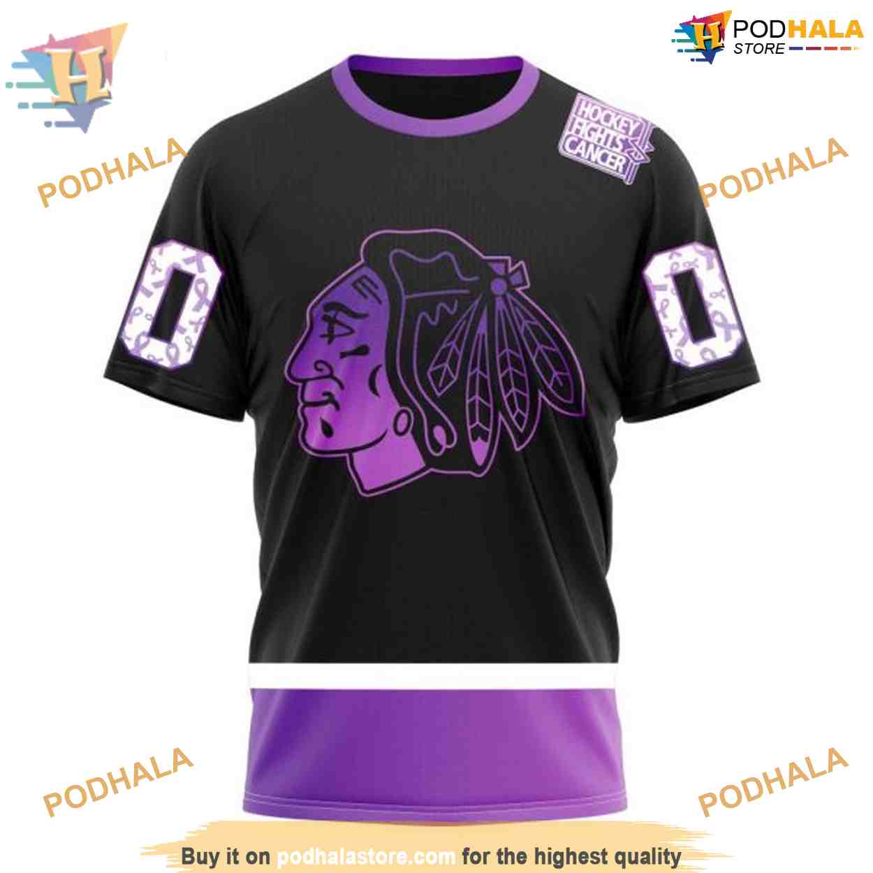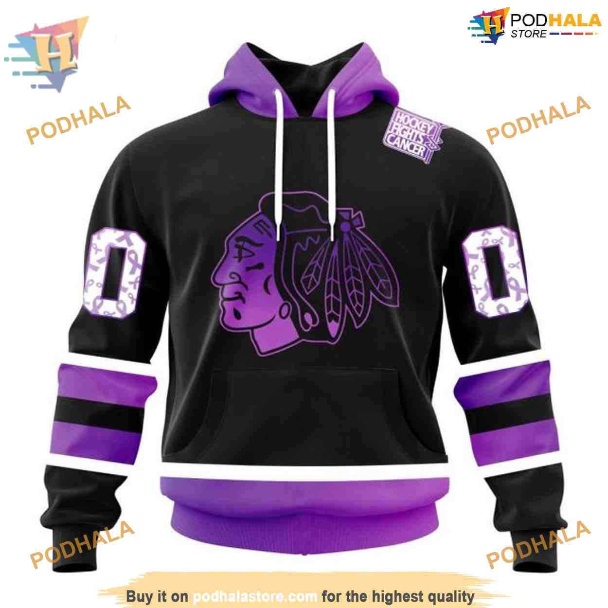 Custom Black Hockey Fights Cancer NHL Chicago Blackhawks Hoodie 3D