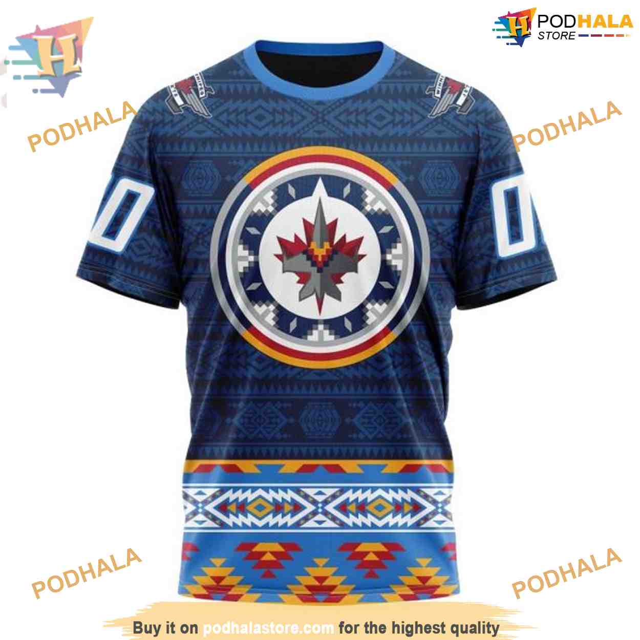 Custom Blue Design With Native Pattern NHL Winnipeg Jets Hoodie 3D