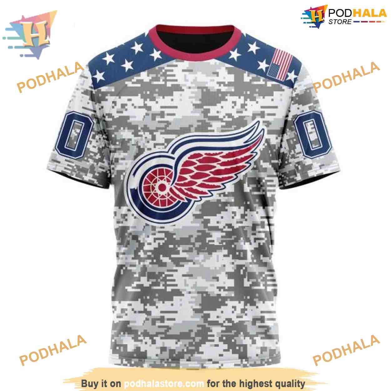 Custom Camo Design For Veterans Day NHL Detroit Red Wings Hoodie 3D