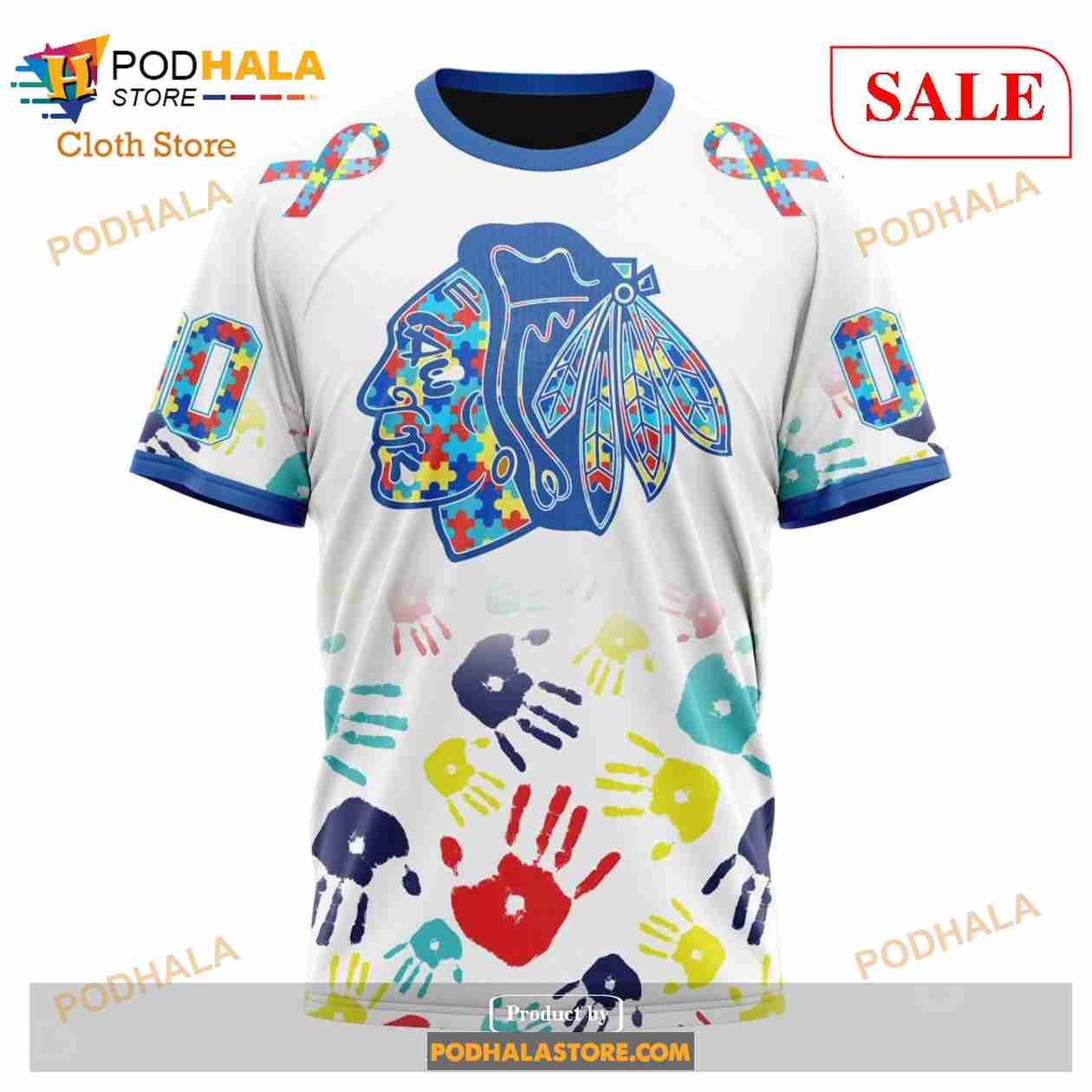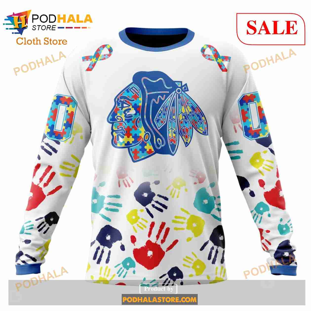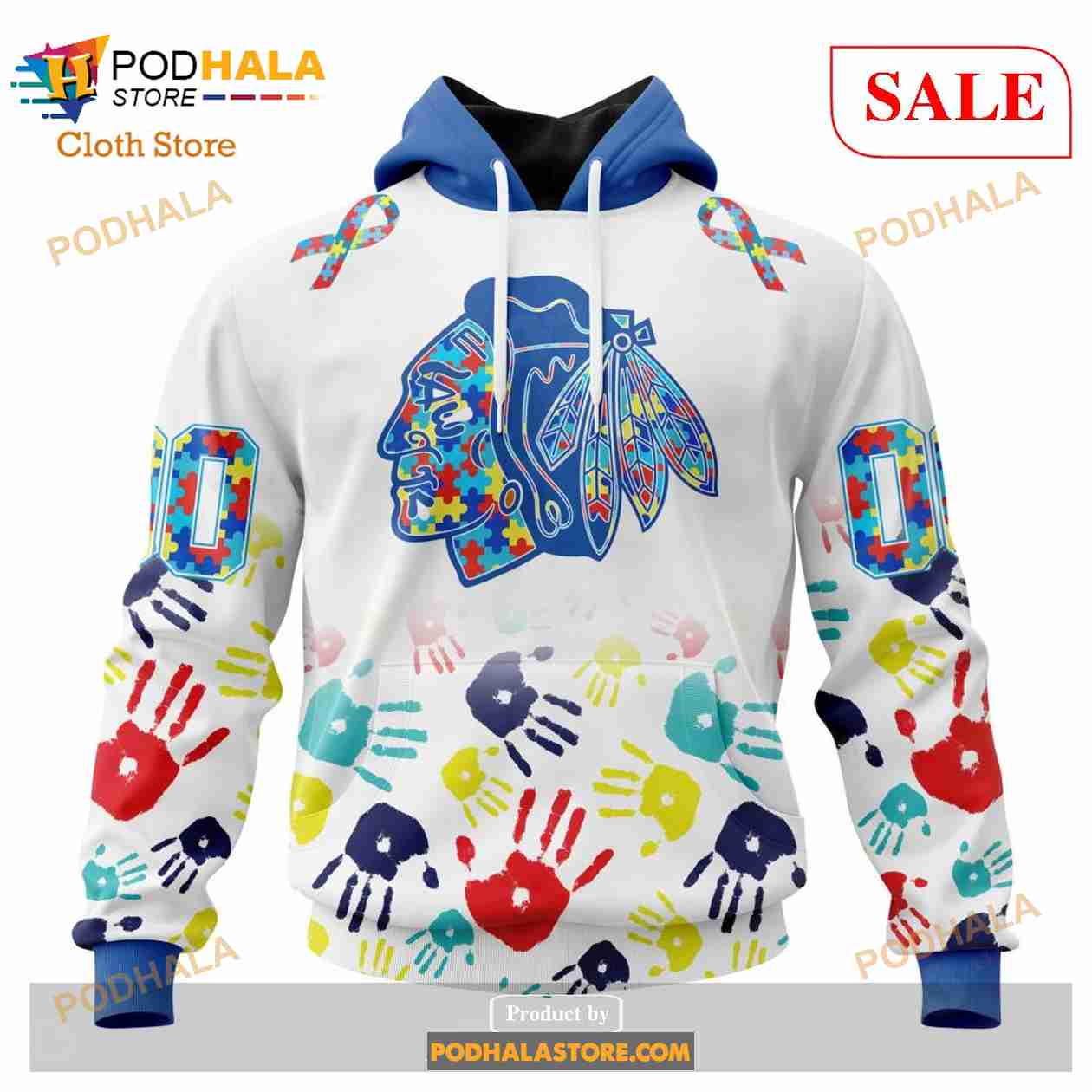 Custom Chicago Blackhawks Autism Awareness Design Sweatshirt NHL Hoodie 3D
