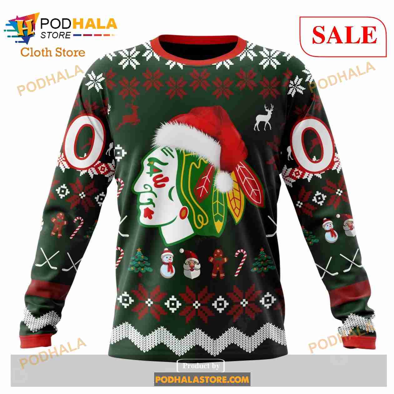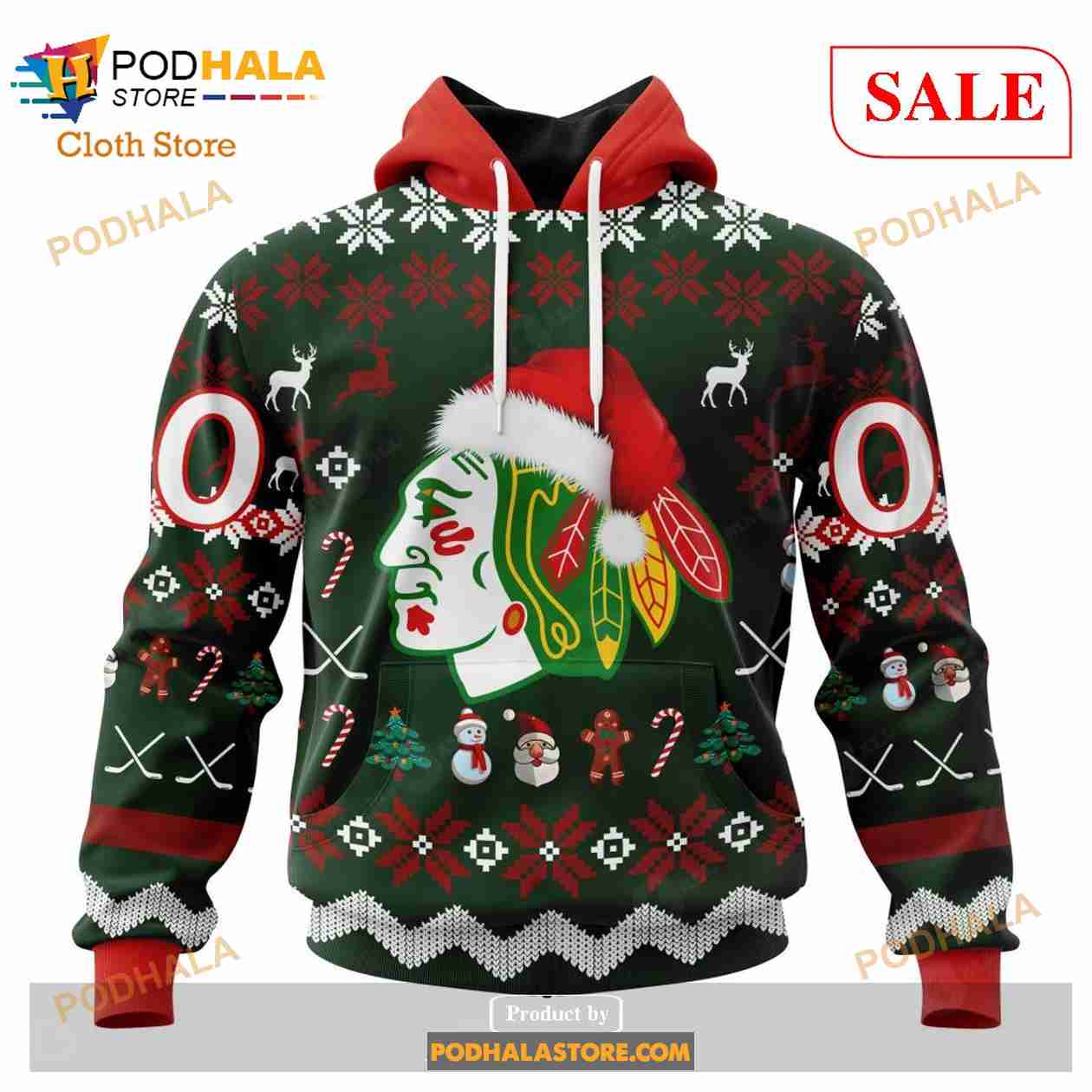 Custom Chicago BlackHawks Christmas Sweatshirt NHL Hoodie 3D For Women Men