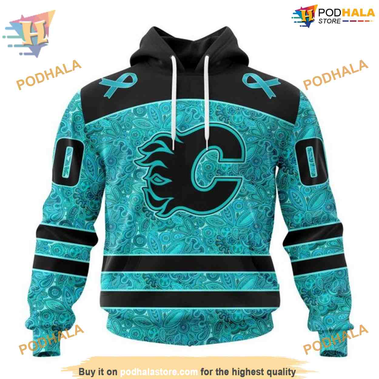 Custom Design Fight Ovarian Cancer NHL Calgary Flames Hoodie 3D