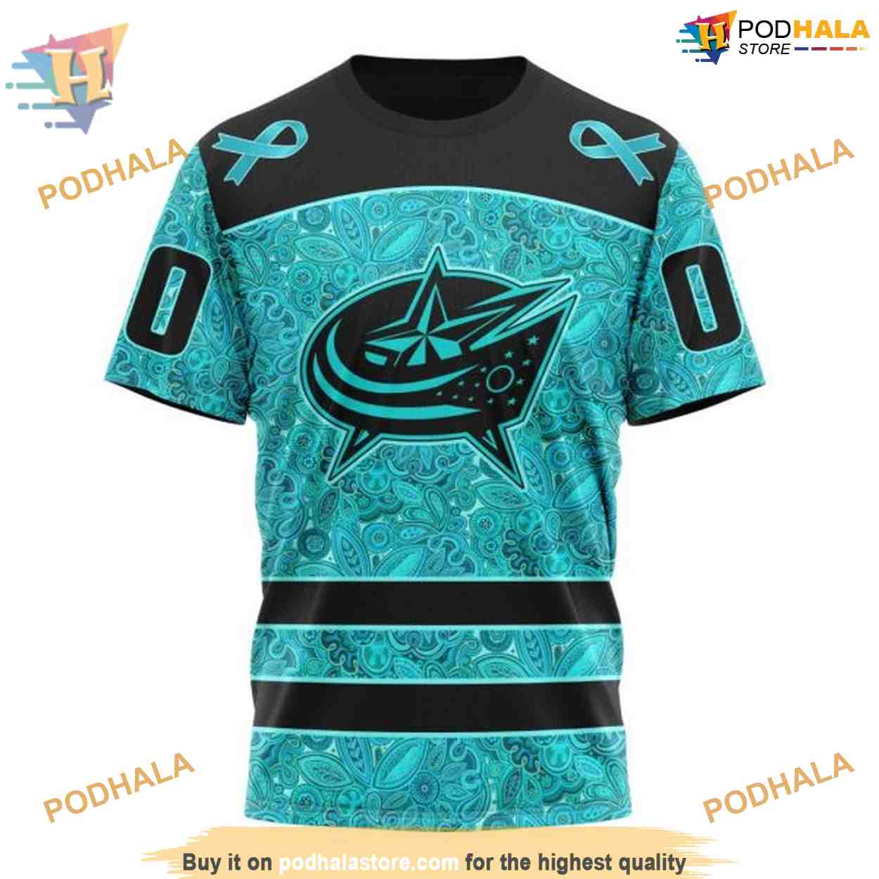 Custom Design Fight Ovarian Cancer NHL Columbus Blue Jackets Hoodie 3D