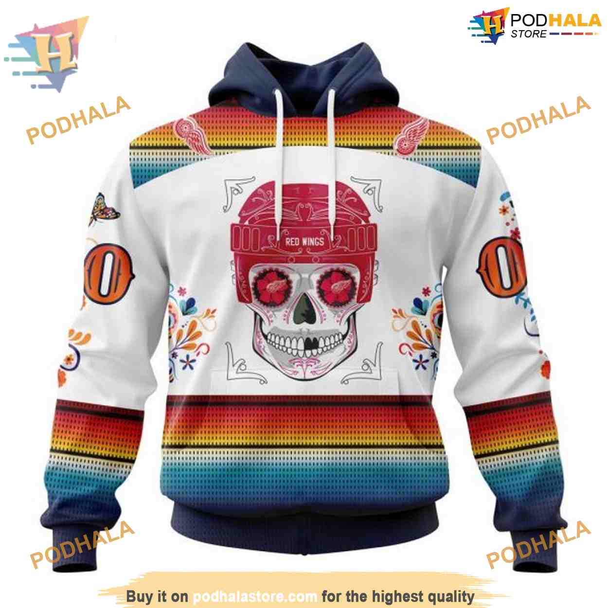 Custom Design For Dia De Los Muertos NHL Detroit Red Wings Hoodie 3D