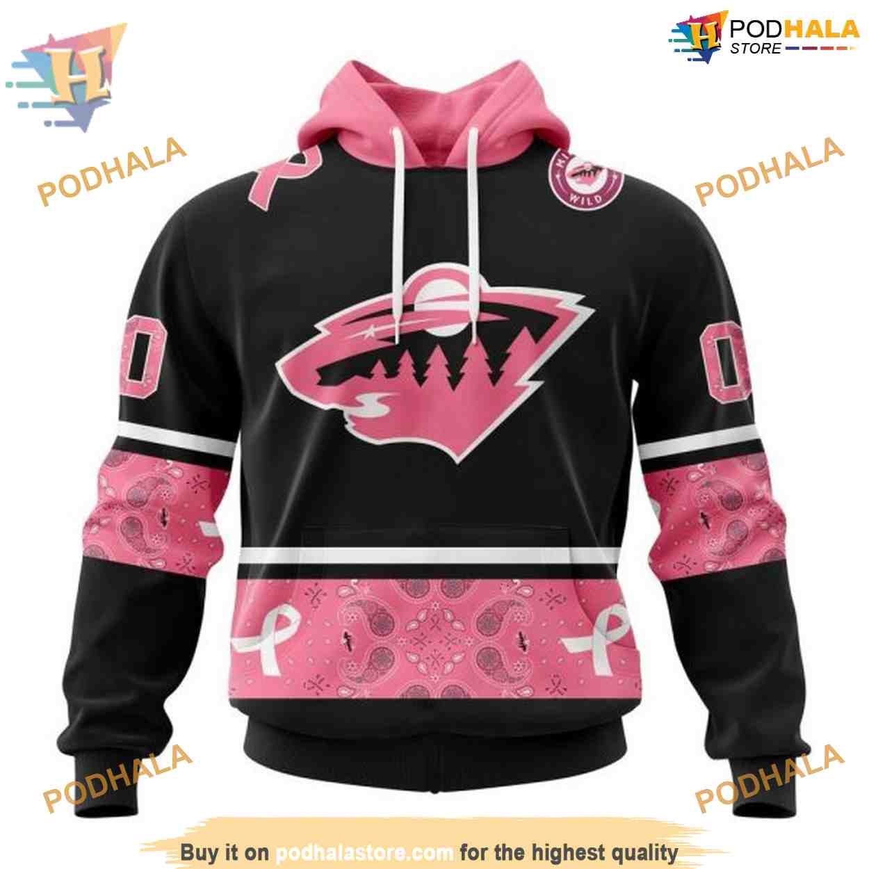 Custom Design PINK BREAST CANCER NHL Minnesota Wild Hoodie 3D
