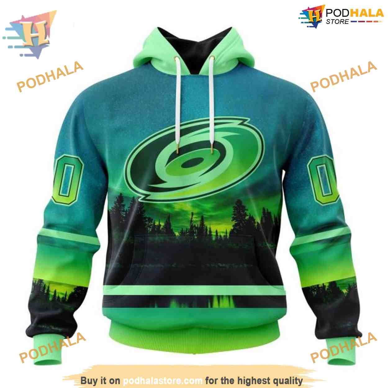 Custom Design With Northern Light Full Printed NHL Carolina Hurricanes Hoodie 3D