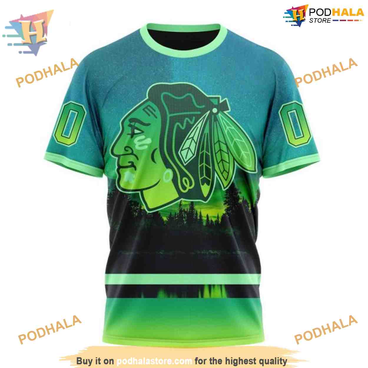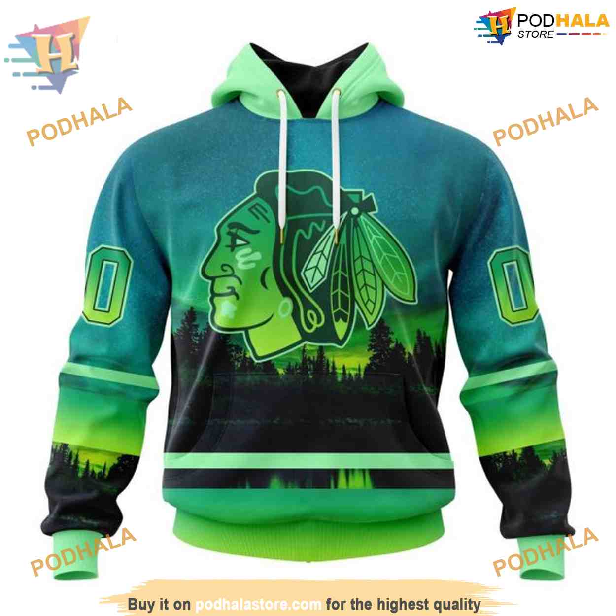 Custom Design With Northern Light Full Printed NHL Chicago Blackhawks Hoodie 3D