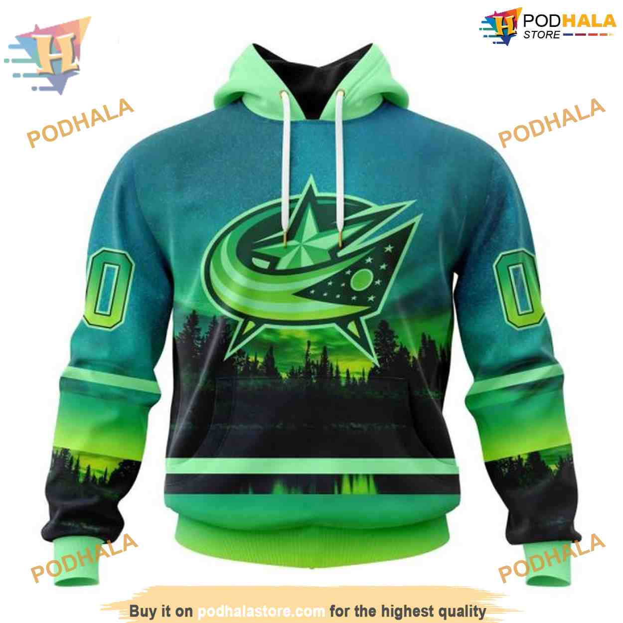 Custom Design With Northern Light Full Printed NHL Columbus Blue Jackets Hoodie 3D
