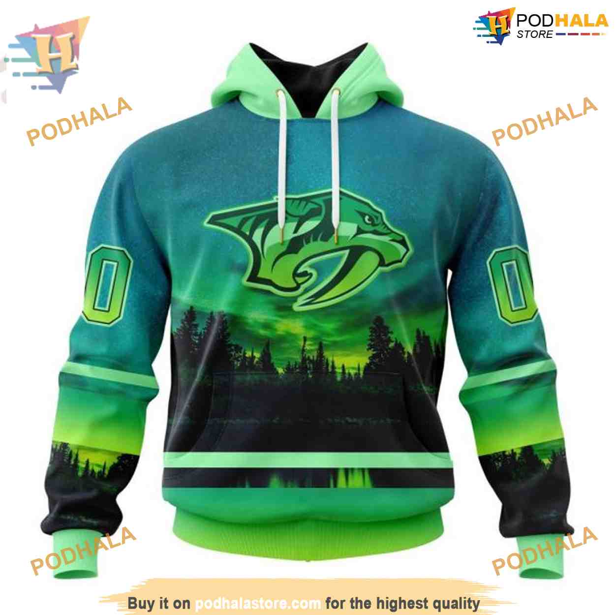 Custom Design With Northern Light Full Printed NHL Nashville Predators Hoodie 3D