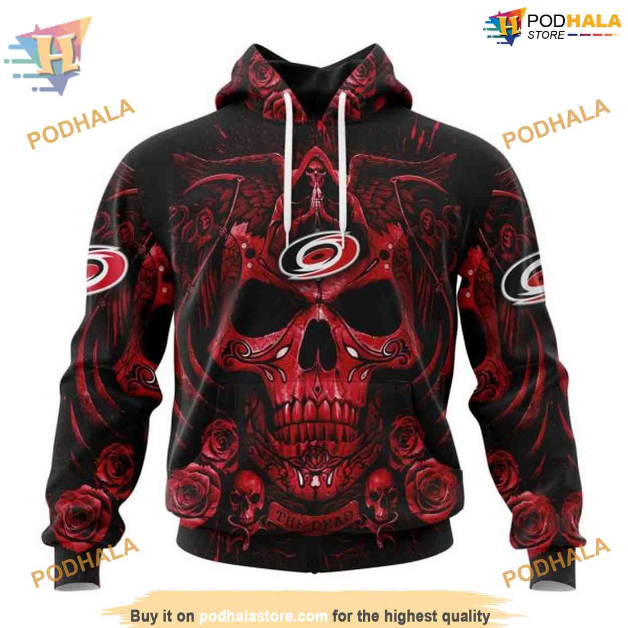 Custom Design With Skull Art NHL Carolina Hurricanes Hoodie 3D Sweatshirt