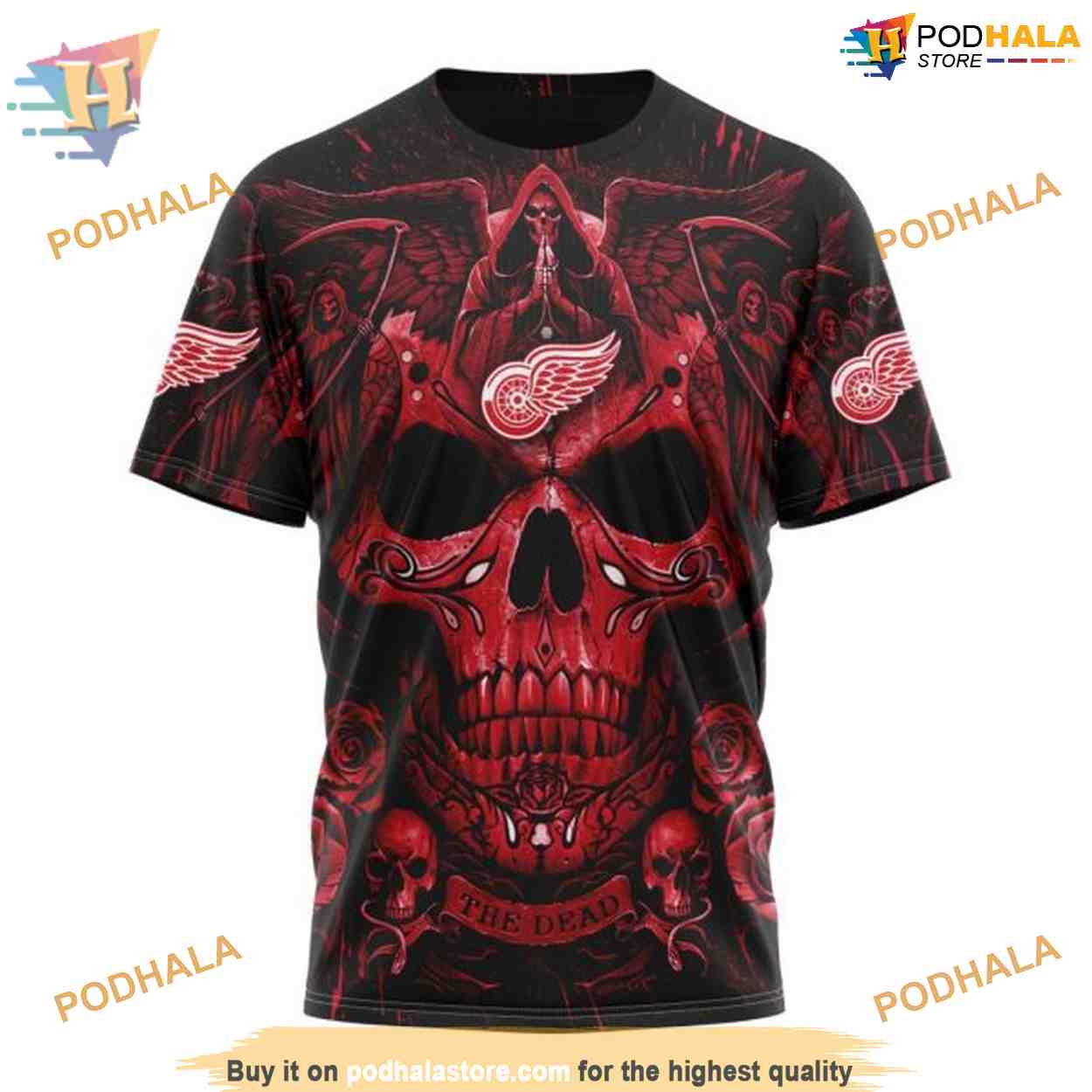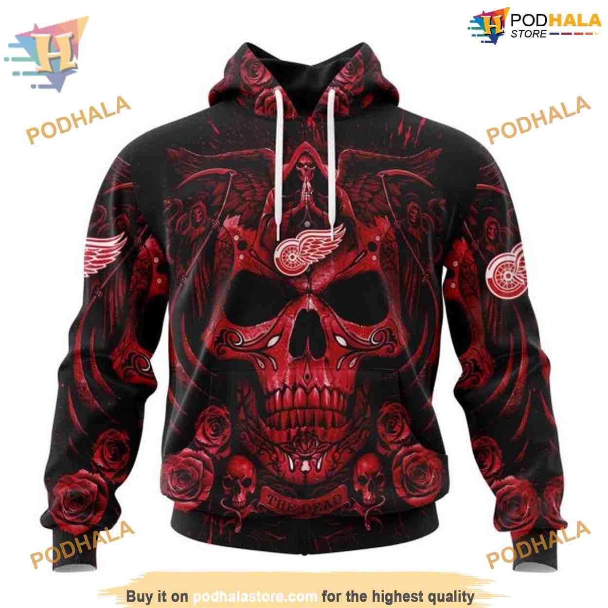 Custom Design With Skull Art NHL Detroit Red Wings Hoodie 3D