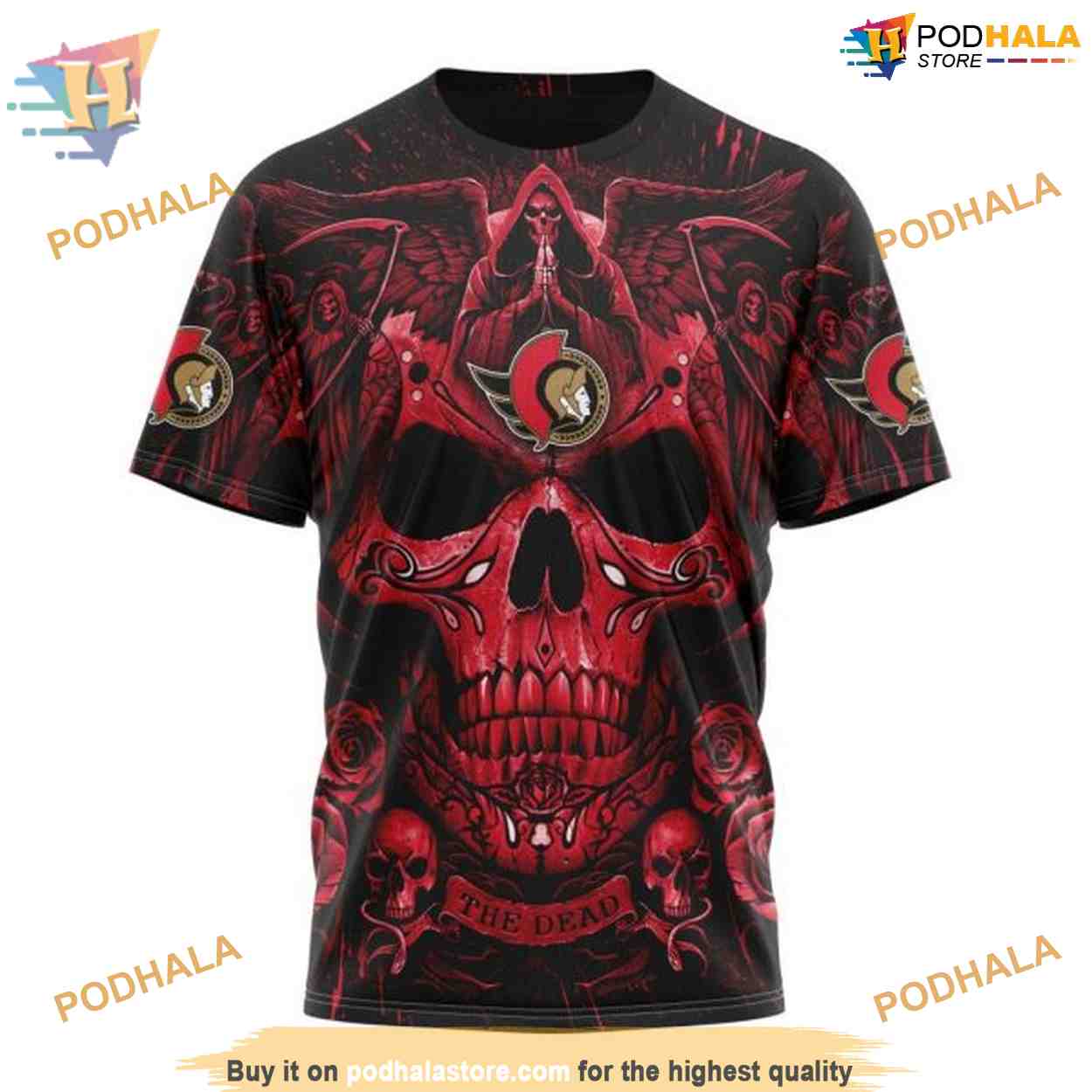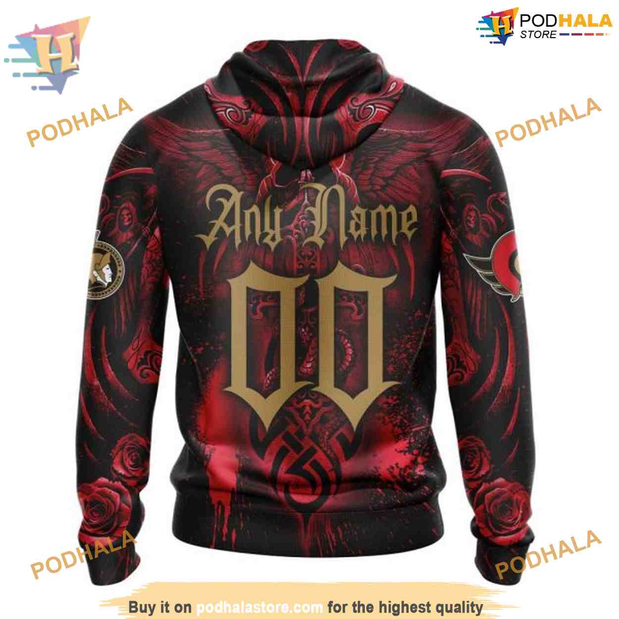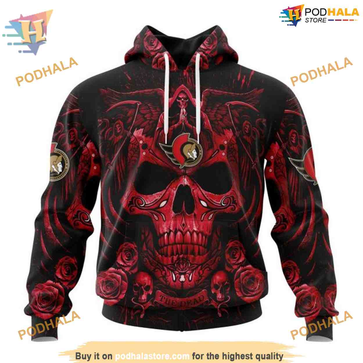 Custom Design With Skull Art NHL Ottawa Senators Hoodie 3D