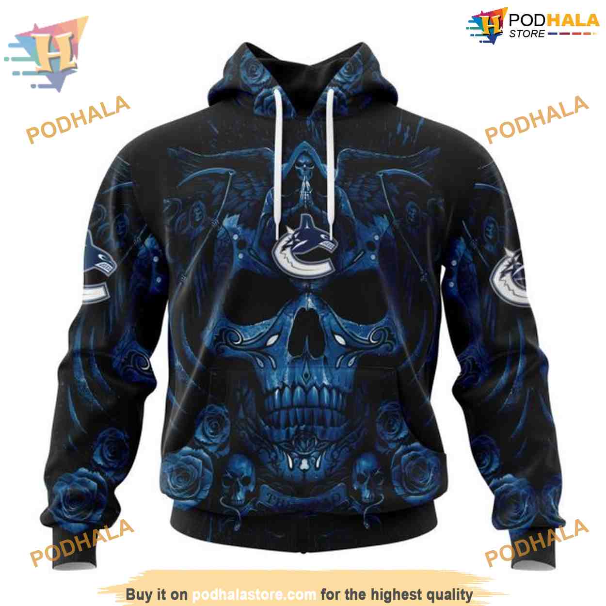 Custom Design With Skull Art NHL Vancouver Canucks Hoodie 3D