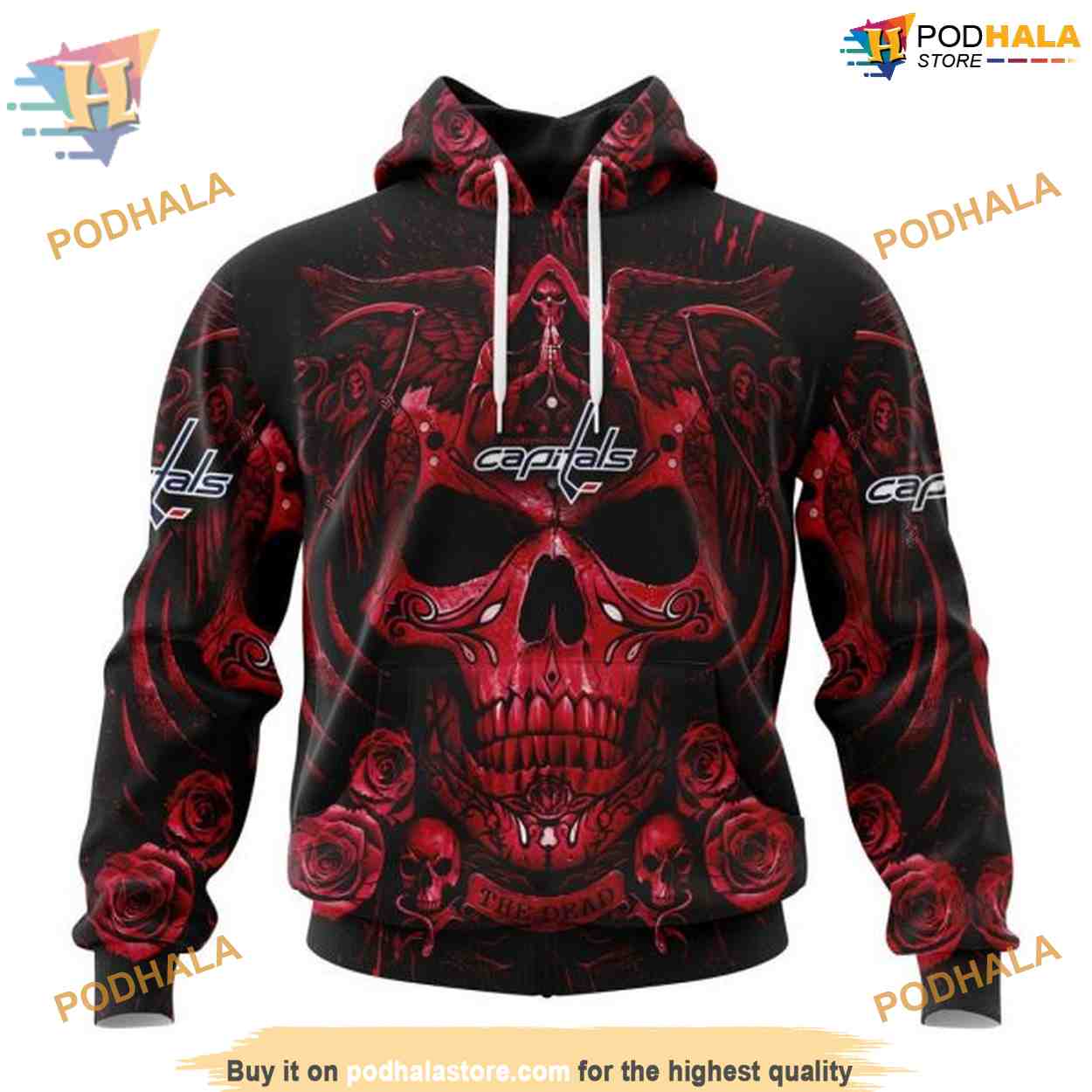 Custom Design With Skull Art NHL Washington Capitals Hoodie 3D