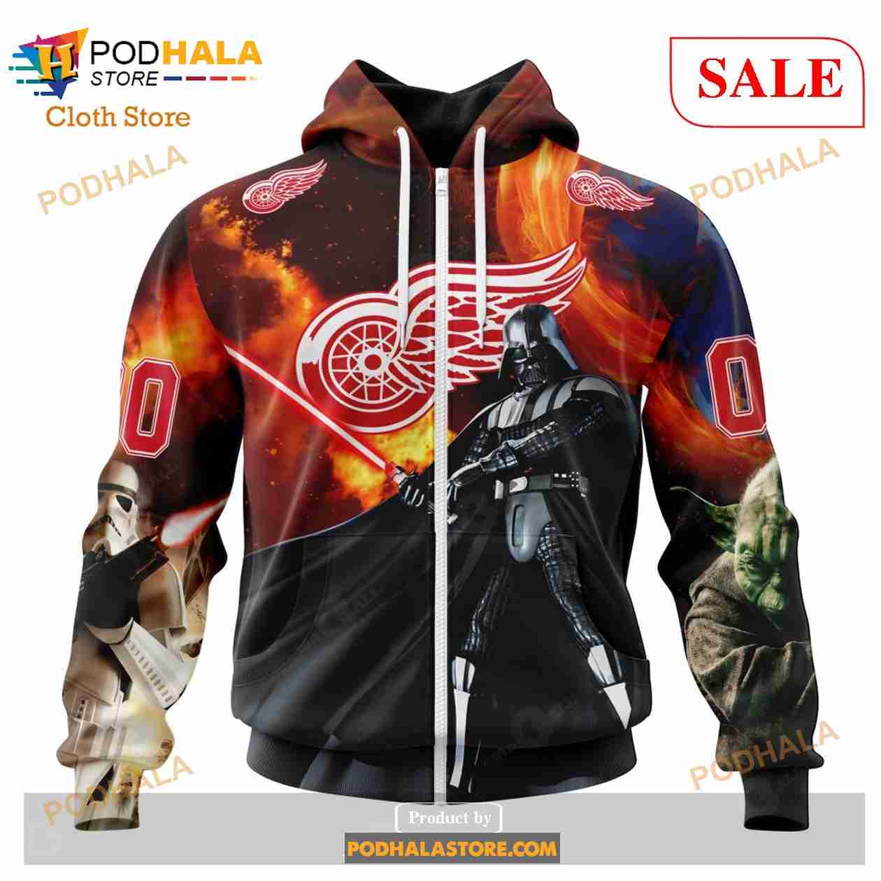 Custom Detroit Red Wings Design X Star War Sweatshirt NHL Hoodie 3D