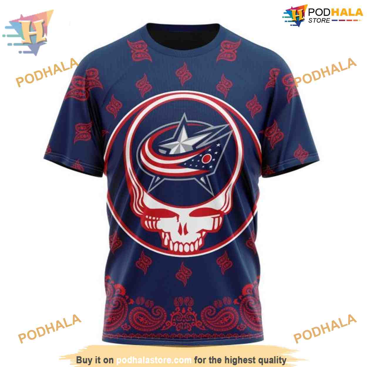 Custom Grateful Dead Design NHL Columbus Blue Jackets Hoodie 3D
