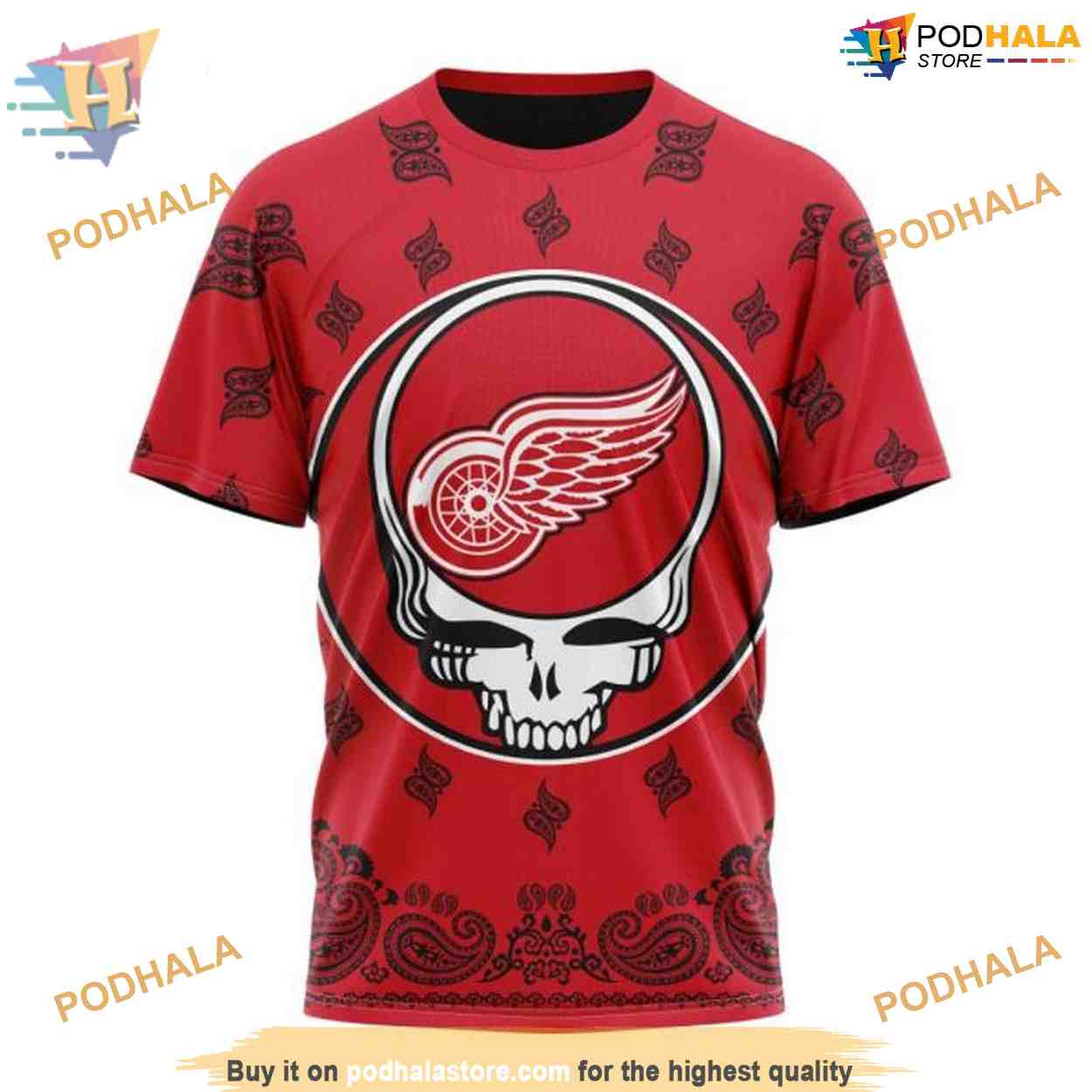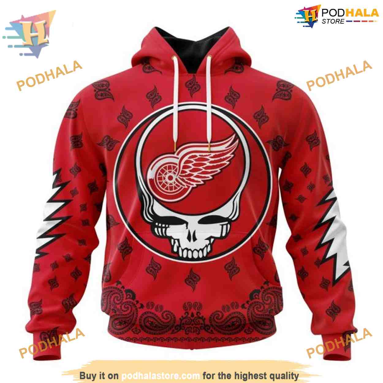 Custom Grateful Dead Design NHL Detroit Red Wings Hoodie 3D
