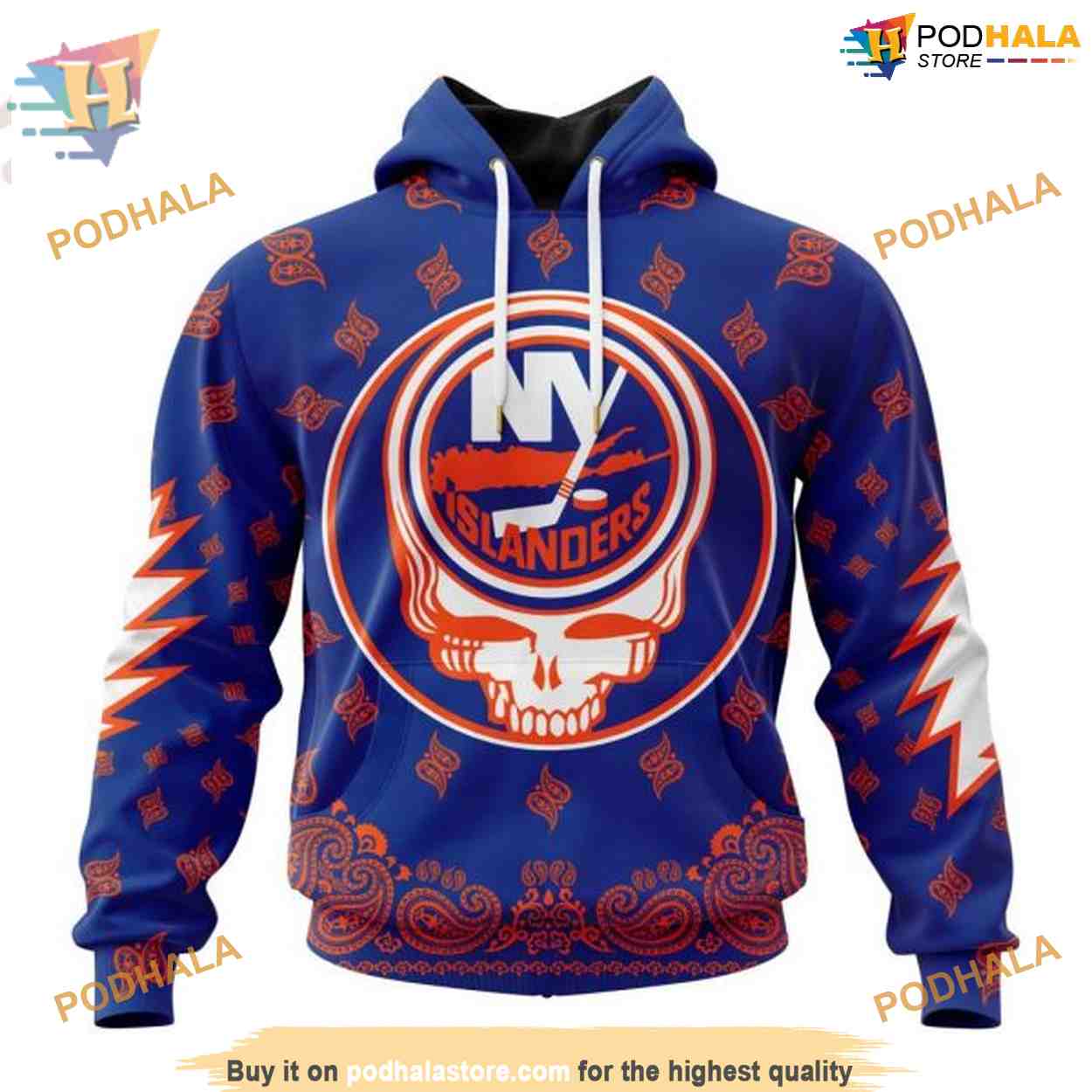 Custom Grateful Dead Design NHL New York Islanders Hoodie 3D