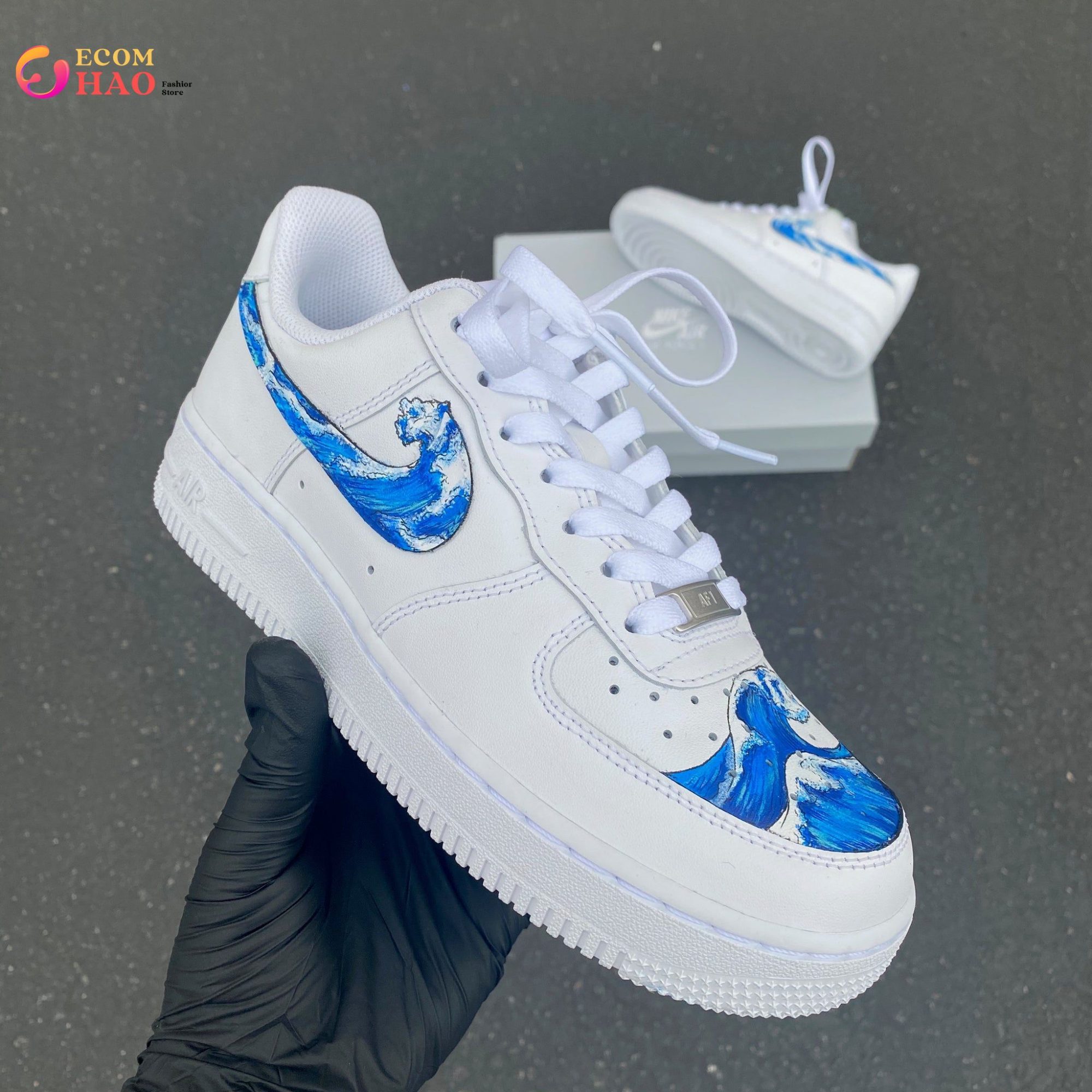 Custom Hand Painted Wave Splash Swoosh Air Force 1 Low This pair of Custom Hand Painted Wave Splash Swoosh Air Force 1 Low shoes is custom designed with creative artwork that will make your shoes stand out from any other pair. The custom hand painted design is sure to make a statement with its colorful...