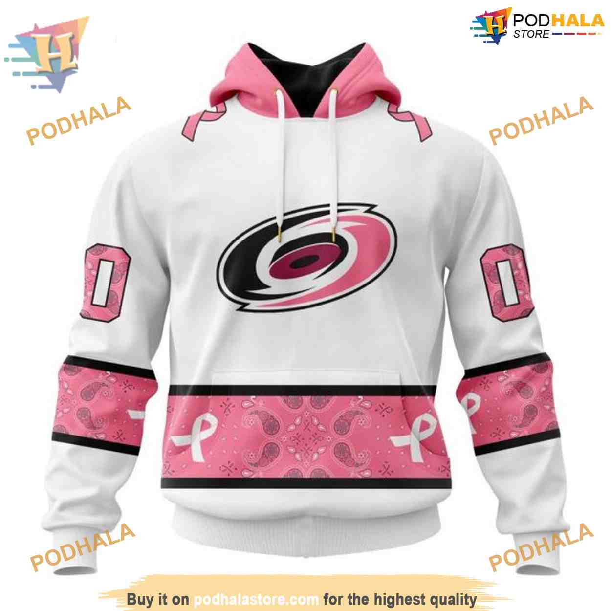 Custom IN OCTOBER WE WEAR PINK BREAST CANCER NHL Carolina Hurricanes Hoodie 3D