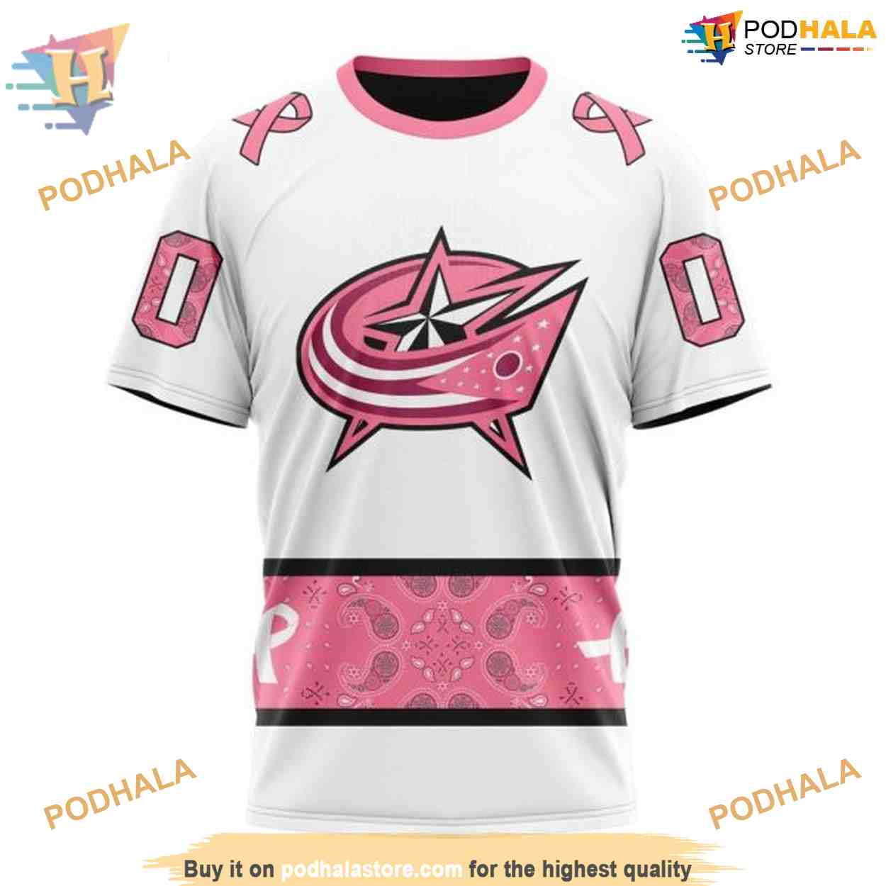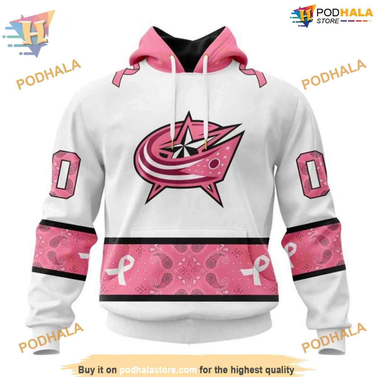 Custom IN OCTOBER WE WEAR PINK BREAST CANCER NHL Columbus Blue Jackets Hoodie 3D