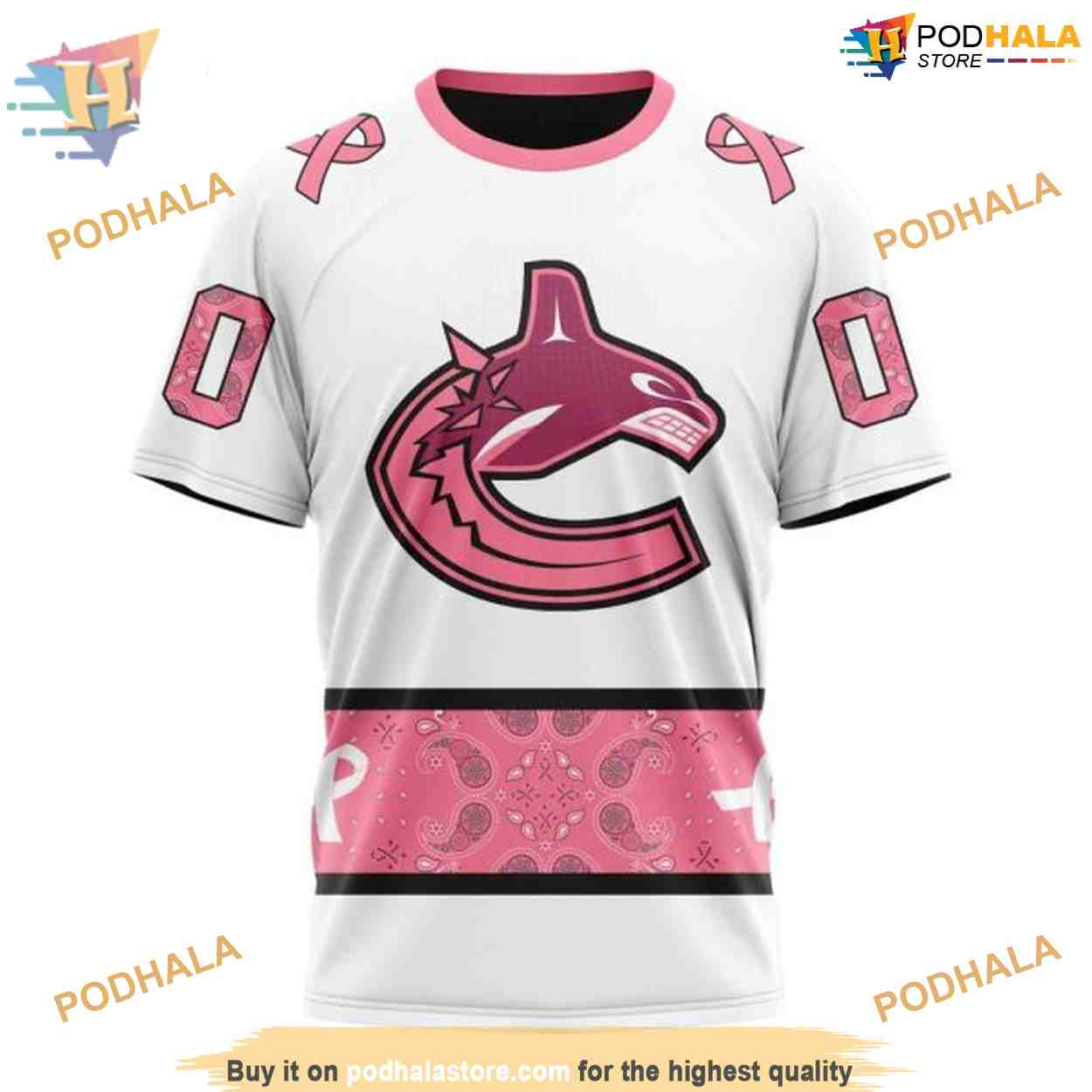 Custom IN OCTOBER WE WEAR PINK BREAST CANCER NHL Vancouver Canucks Hoodie 3D