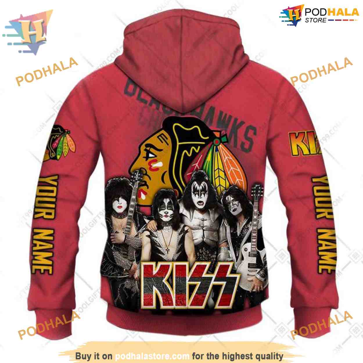 Custom Kiss Band Style NHL Chicago Blackhawks Hoodie 3D