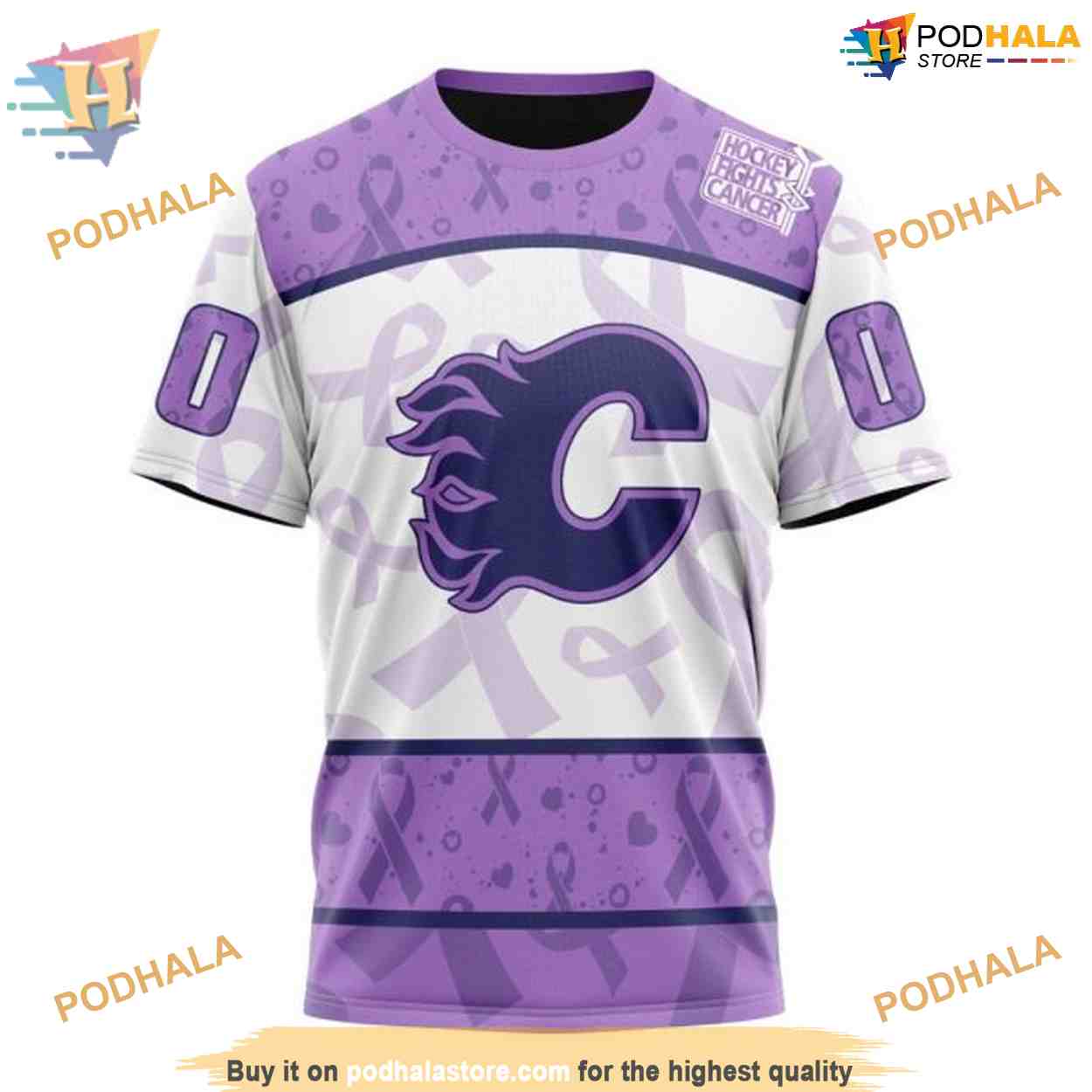 Custom Lavender Fight Cancer NHL Calgary Flames Hoodie 3D Sweatshirt
