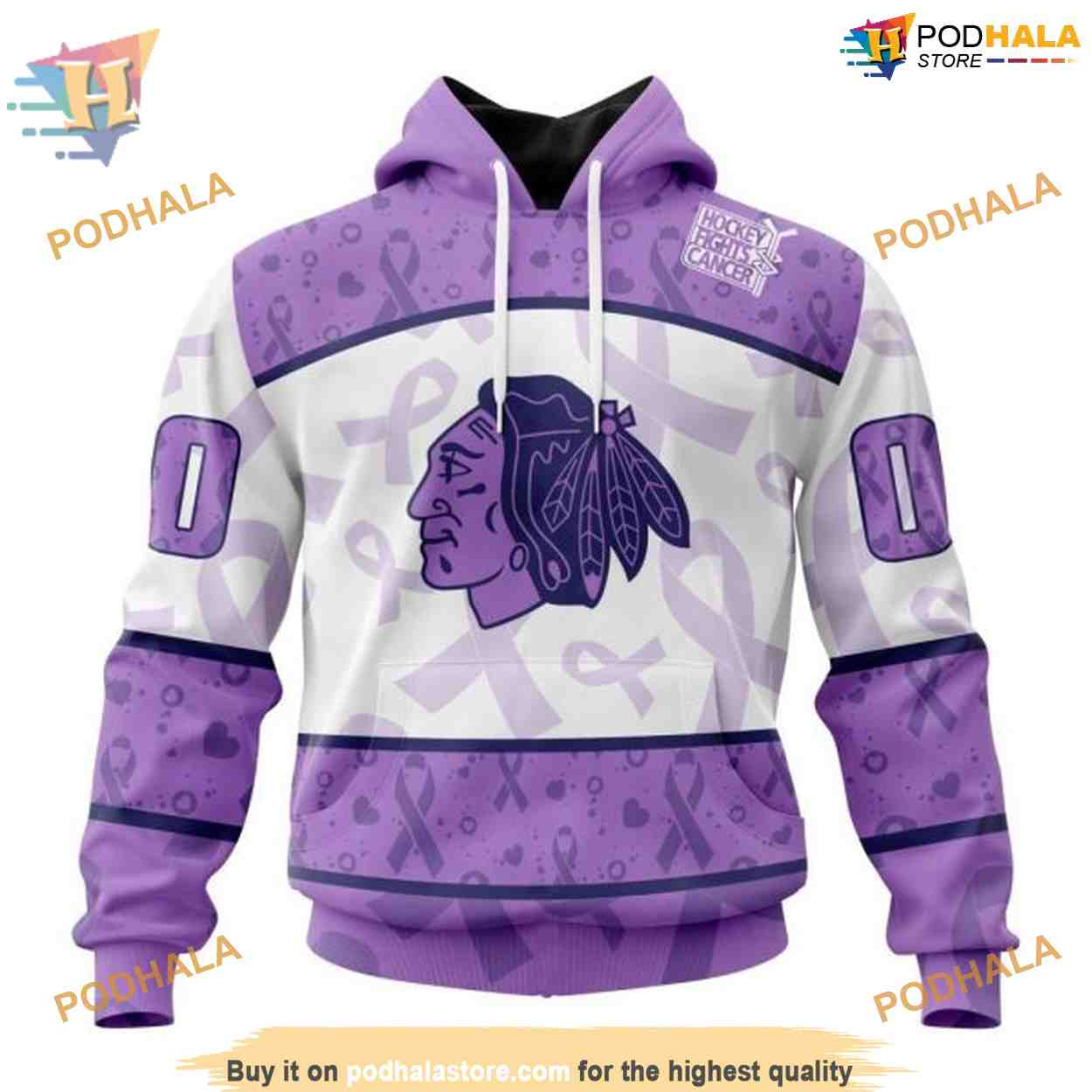 Custom Lavender Fight Cancer NHL Chicago Blackhawks Hoodie 3D