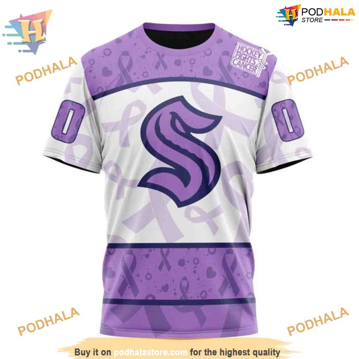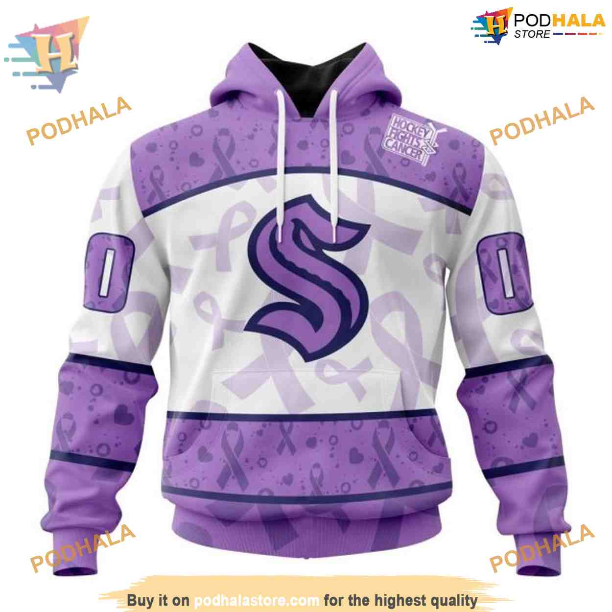 Custom Lavender Fight Cancer NHL Seattle Kraken Hoodie 3D
