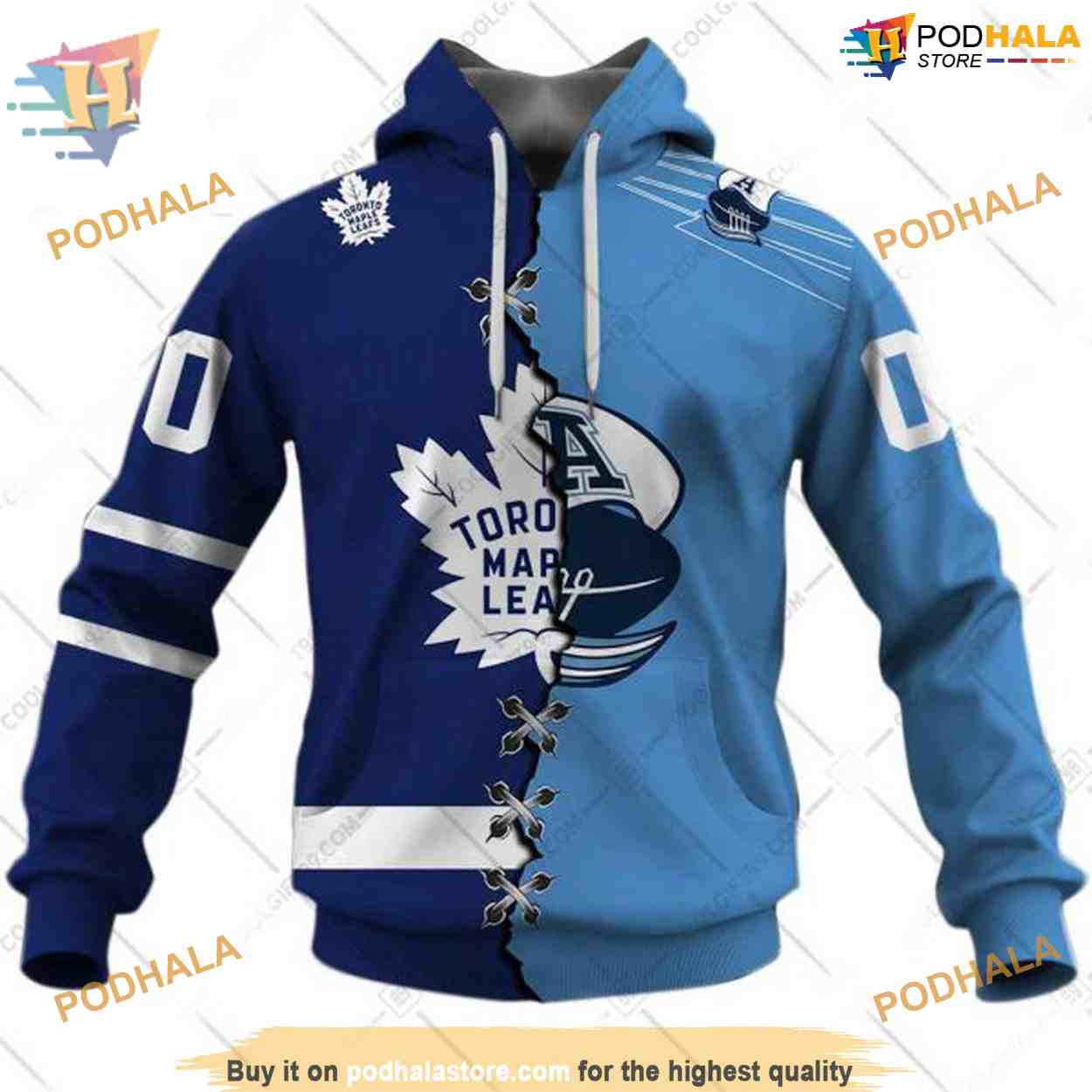 Custom Mix CFL Toronto Argonauts Jersey Style 3D NHL Toronto Maple Leafs Hoodie