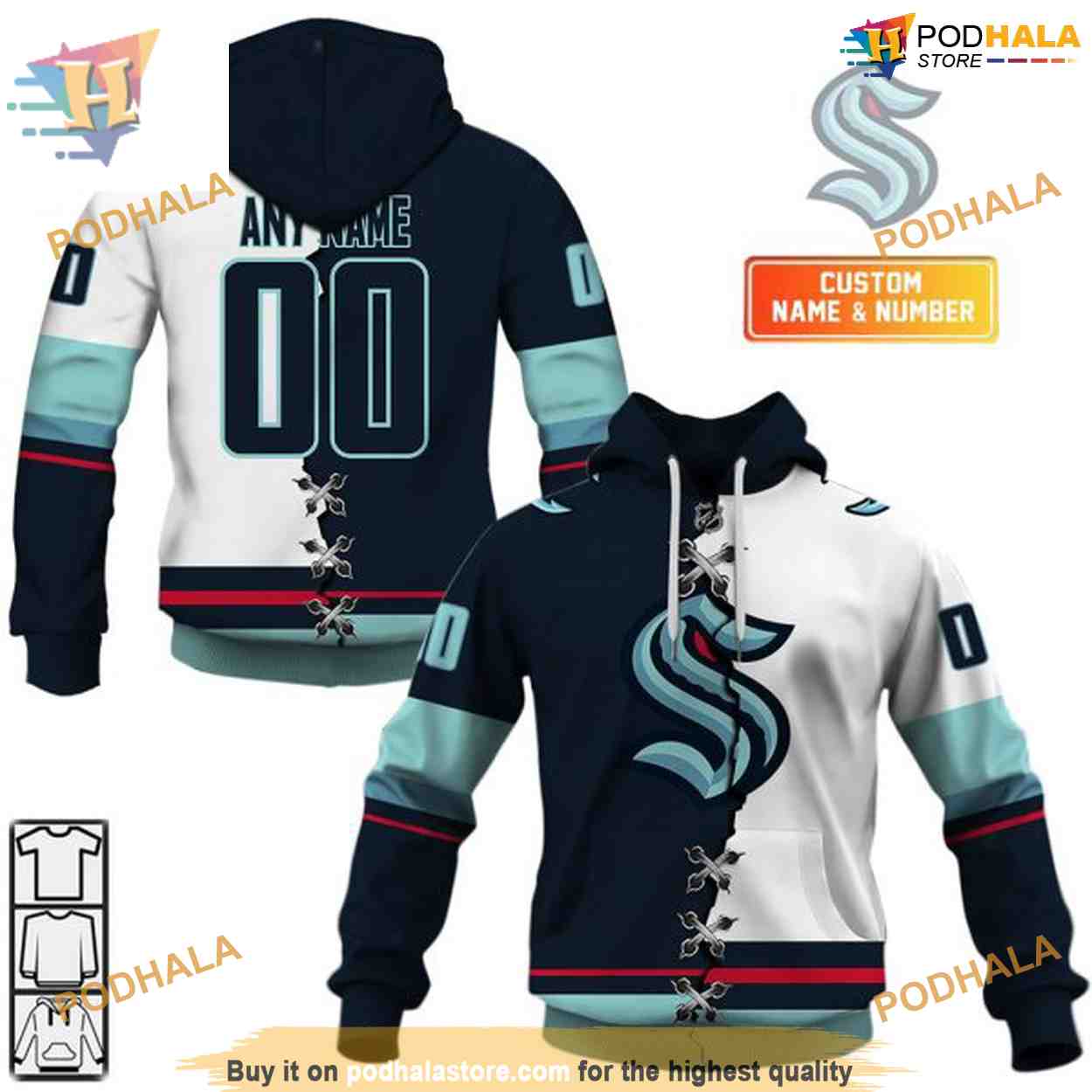 Custom Mix Jersey 2023 Style NHL Seattle Kraken Hoodie 3D