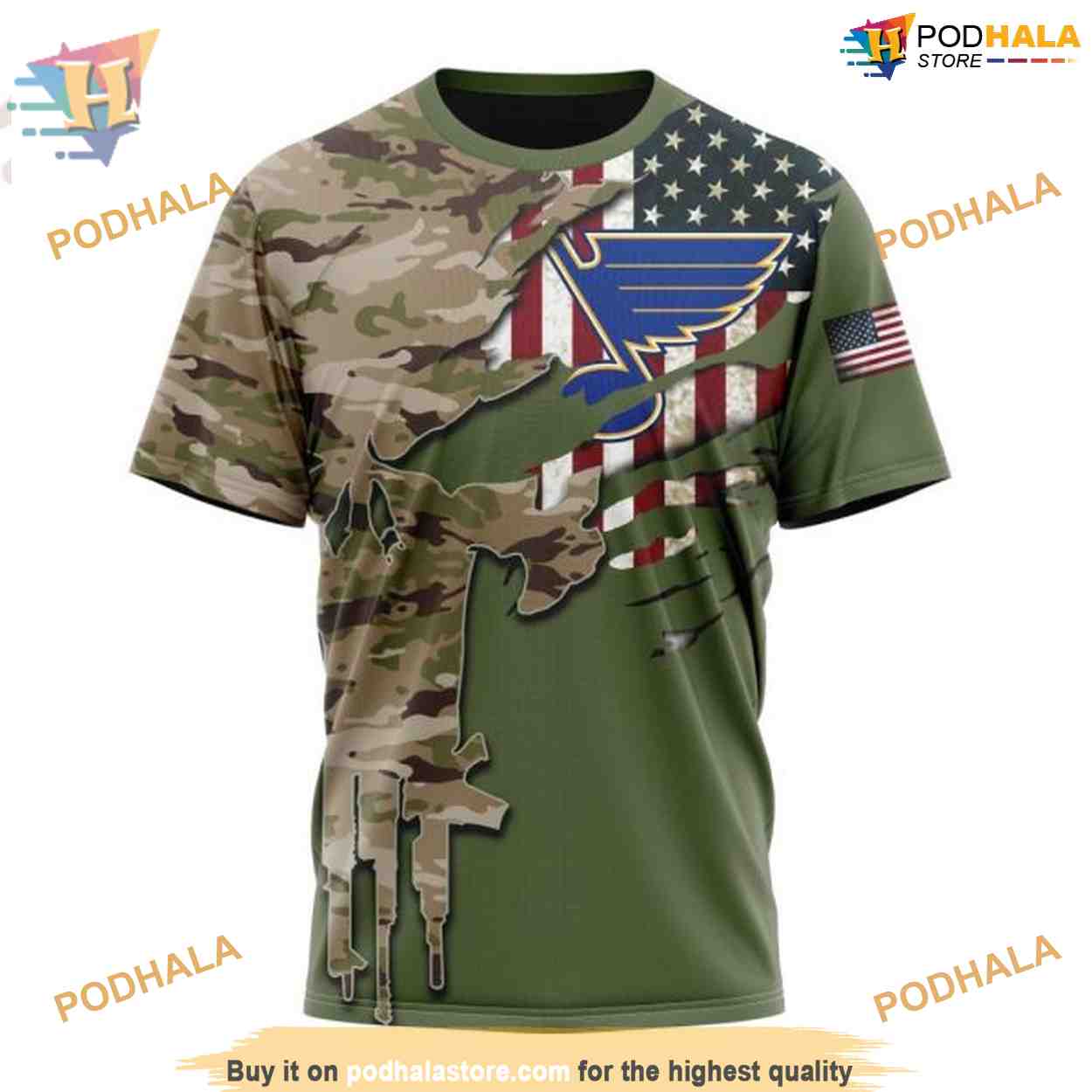 Custom Name And Number Camo Skull Design NHL St. Louis Blues Hoodie 3D