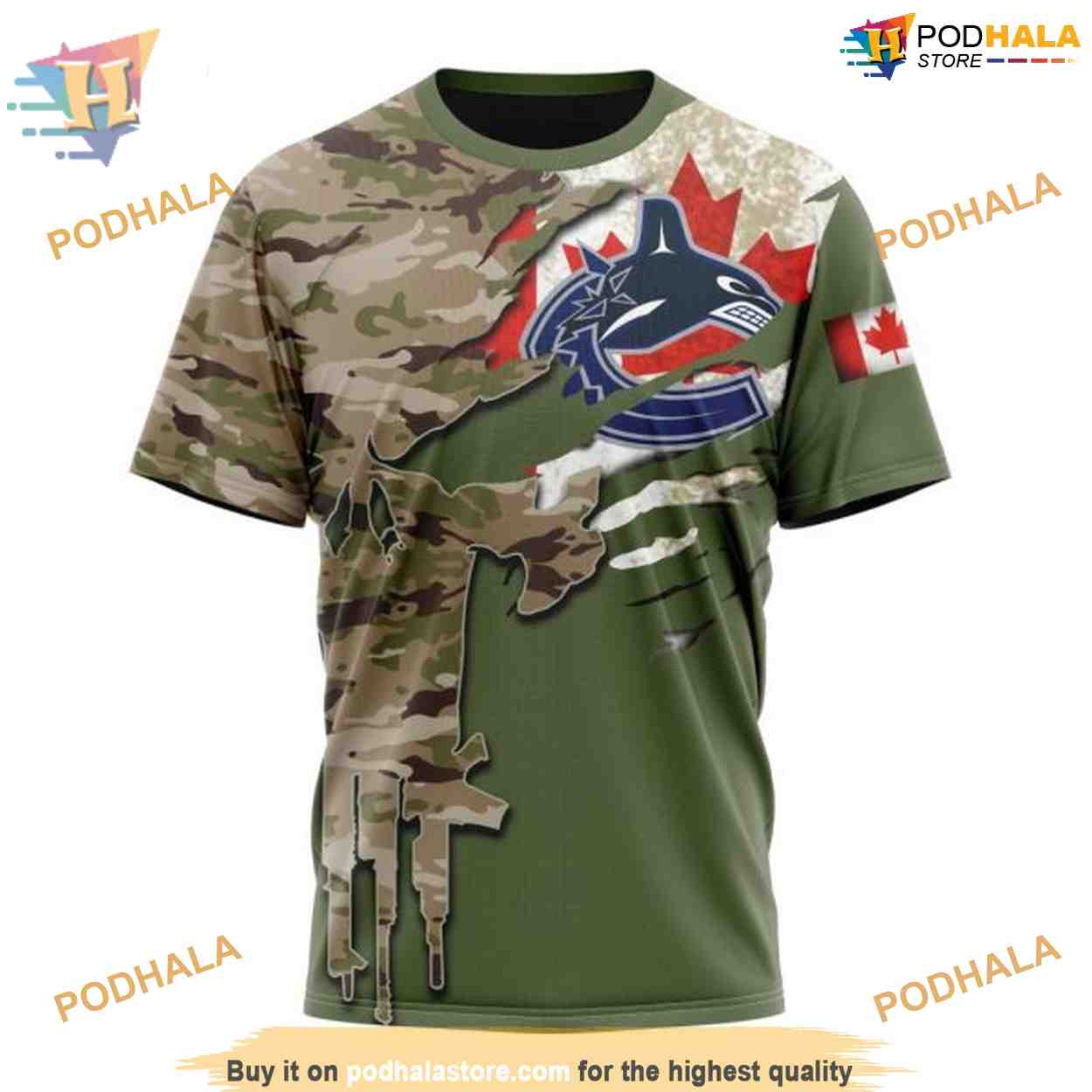 Custom Name And Number Camo Skull Design NHL Vancouver Canucks Hoodie 3D