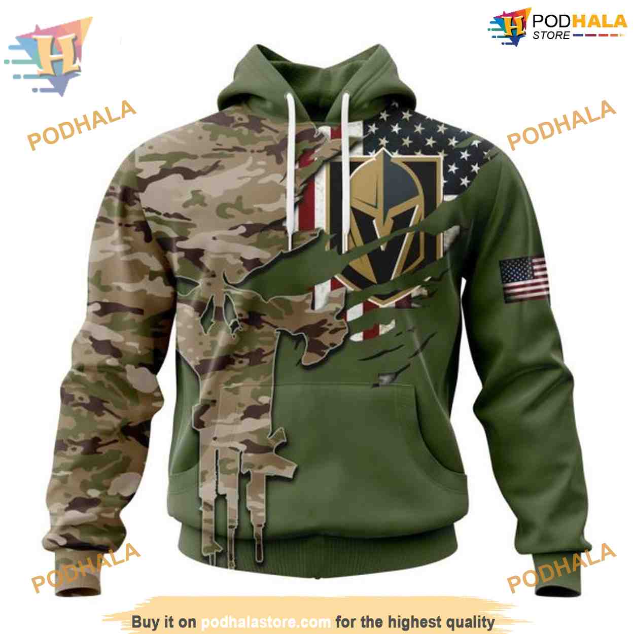 Custom Name And Number Camo Skull Design NHL Vegas Golden Knights Hoodie 3D